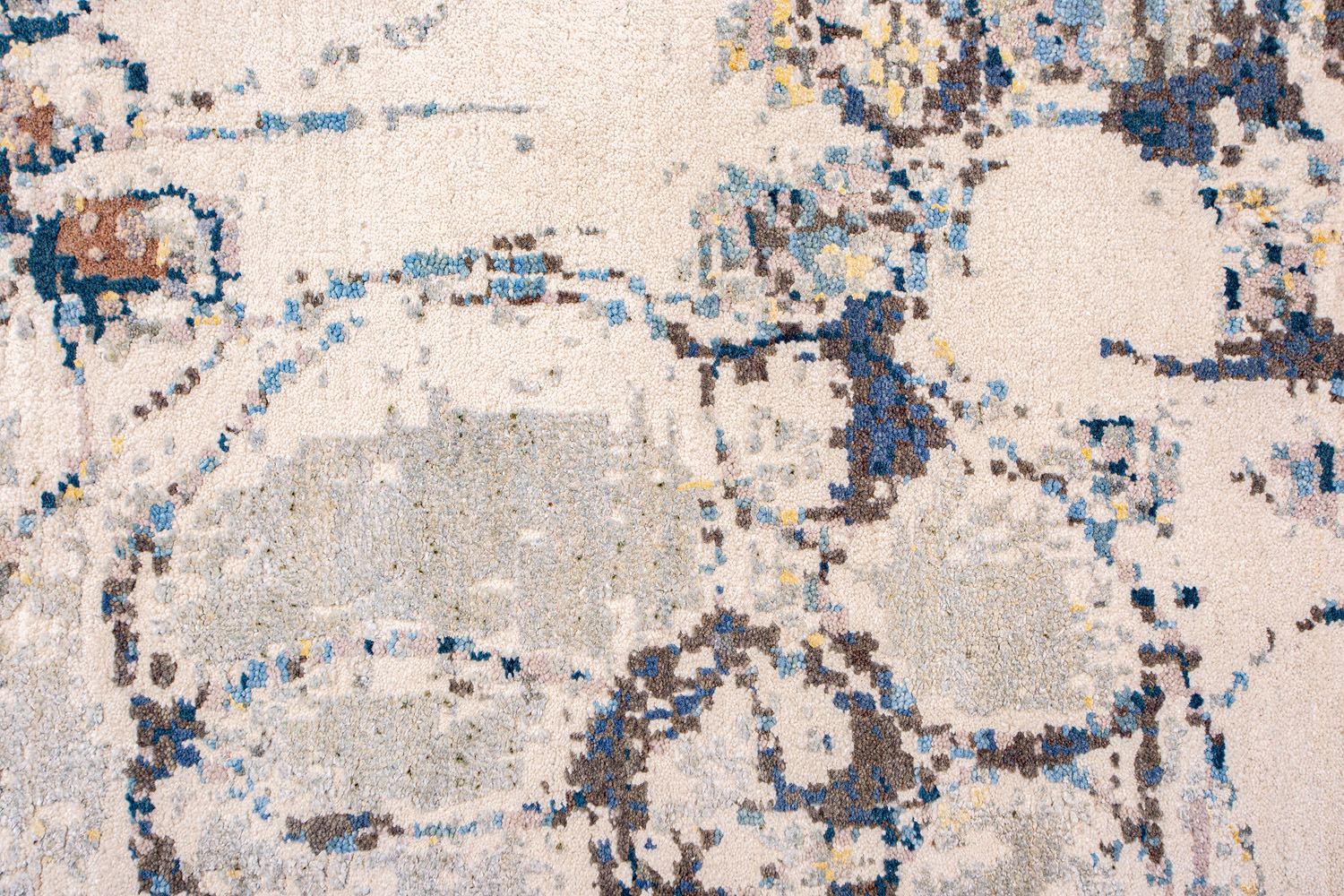 Дизайн ковров напоминает современные полотна художников-абстракционистов и производит столь же яркое и незабываемое впечатление в интерьере. Живописный эффект и необычная фактура зависят от выбора материала: натуральной шерсти, шёлка и от их сочетаний друг с другом. Ковры ткутся вручную в лучших мастерских Индии и Пакистана.