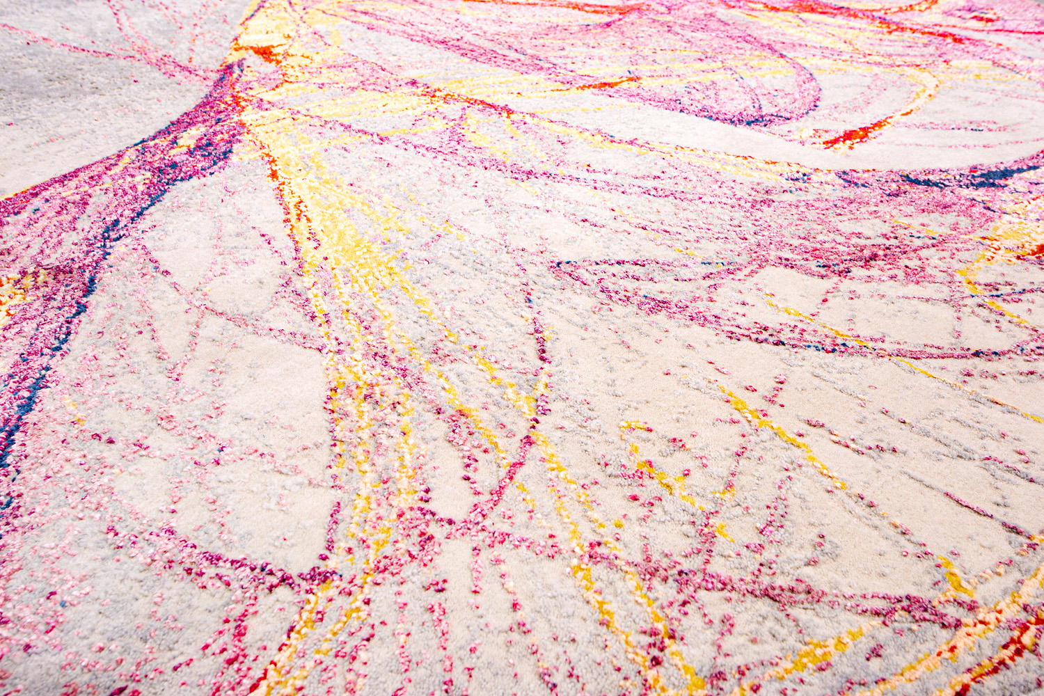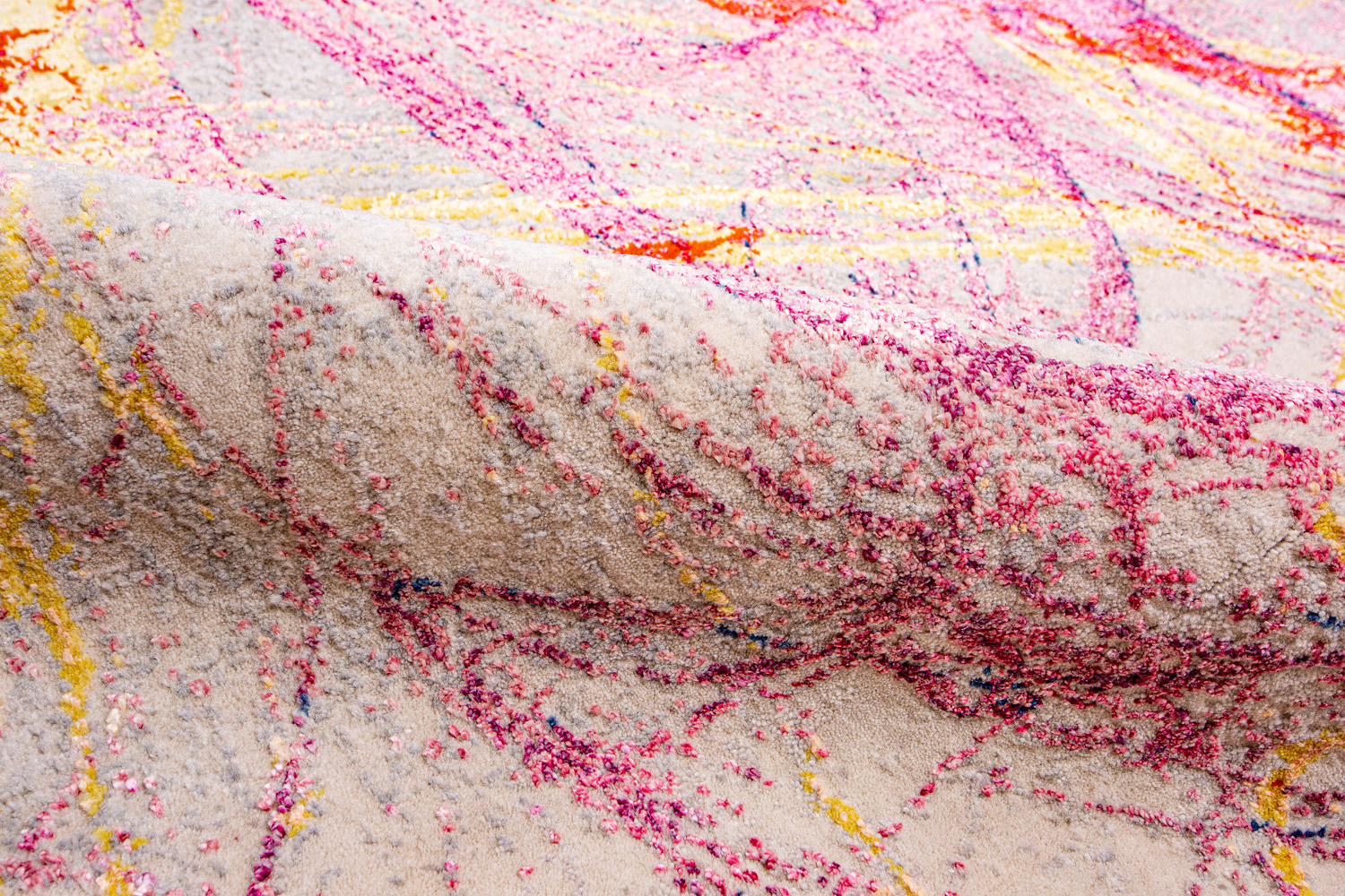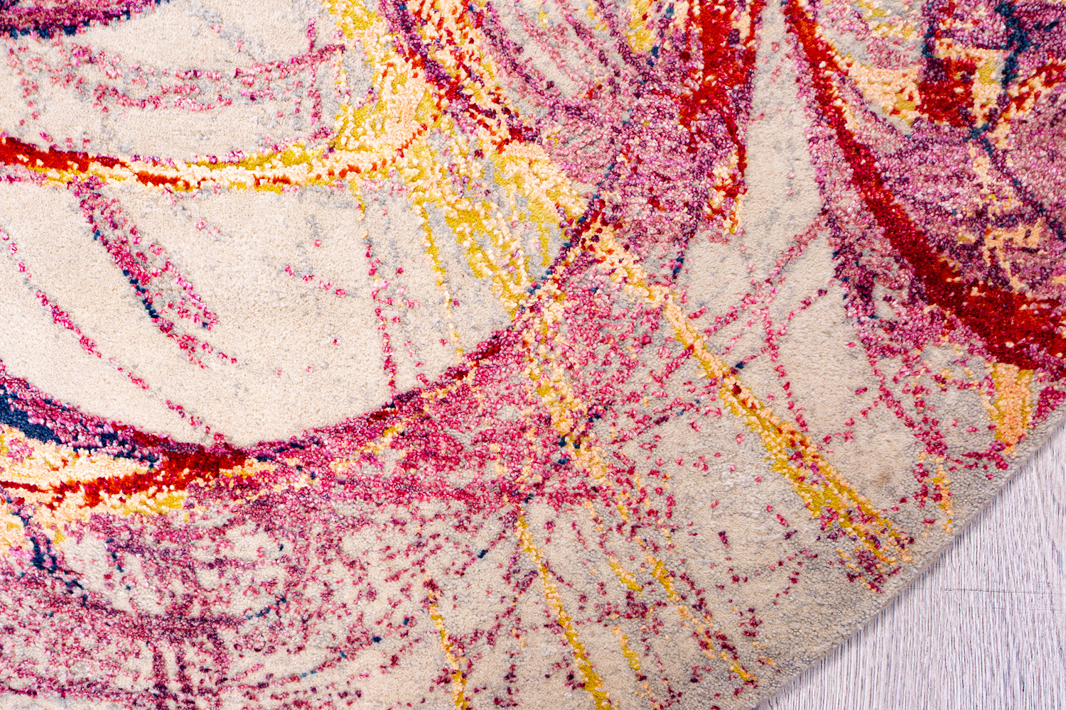 Дизайн ковров напоминает современные полотна художников-абстракционистов и производит столь же яркое и незабываемое впечатление в интерьере. Живописный эффект и необычная фактура зависят от выбора материала: натуральной шерсти, шёлка и от их сочетаний друг с другом. Ковры ткутся вручную в лучших мастерских Индии и Пакистана.