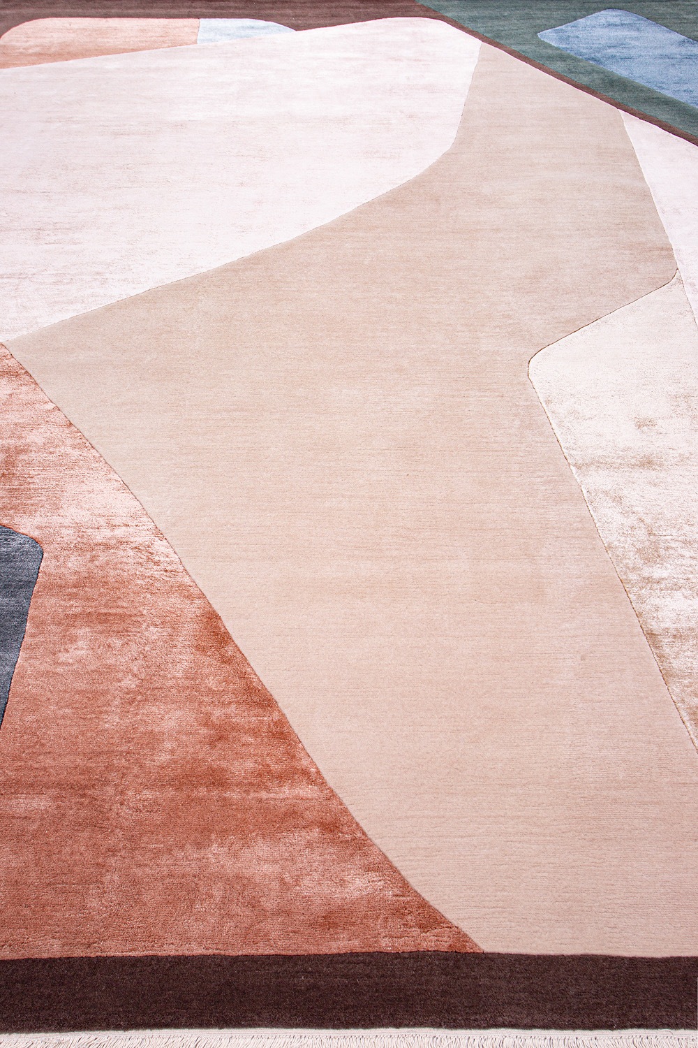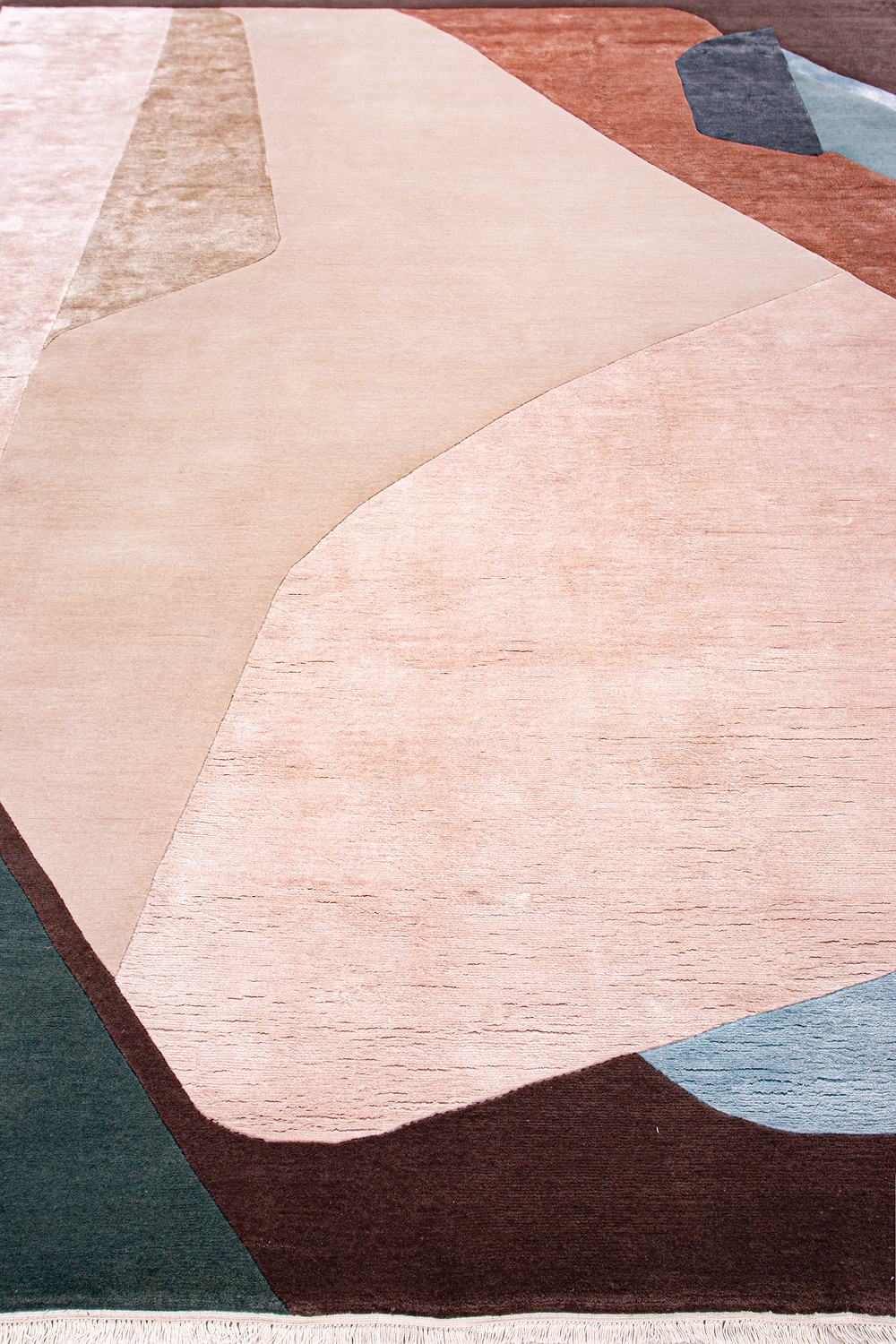 Дизайн ковров напоминает современные полотна художников-абстракционистов и производит столь же яркое и незабываемое впечатление в интерьере. Живописный эффект и необычная фактура зависят от выбора материала: натуральной шерсти, шёлка и от их сочетаний друг с другом. Ковры ткутся вручную в лучших мастерских Индии и Пакистана.