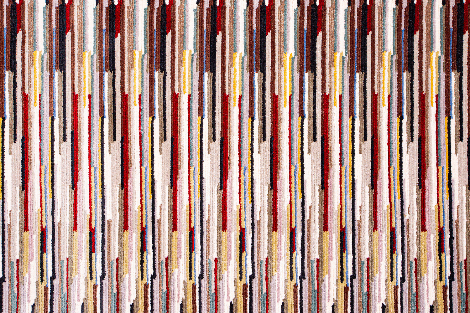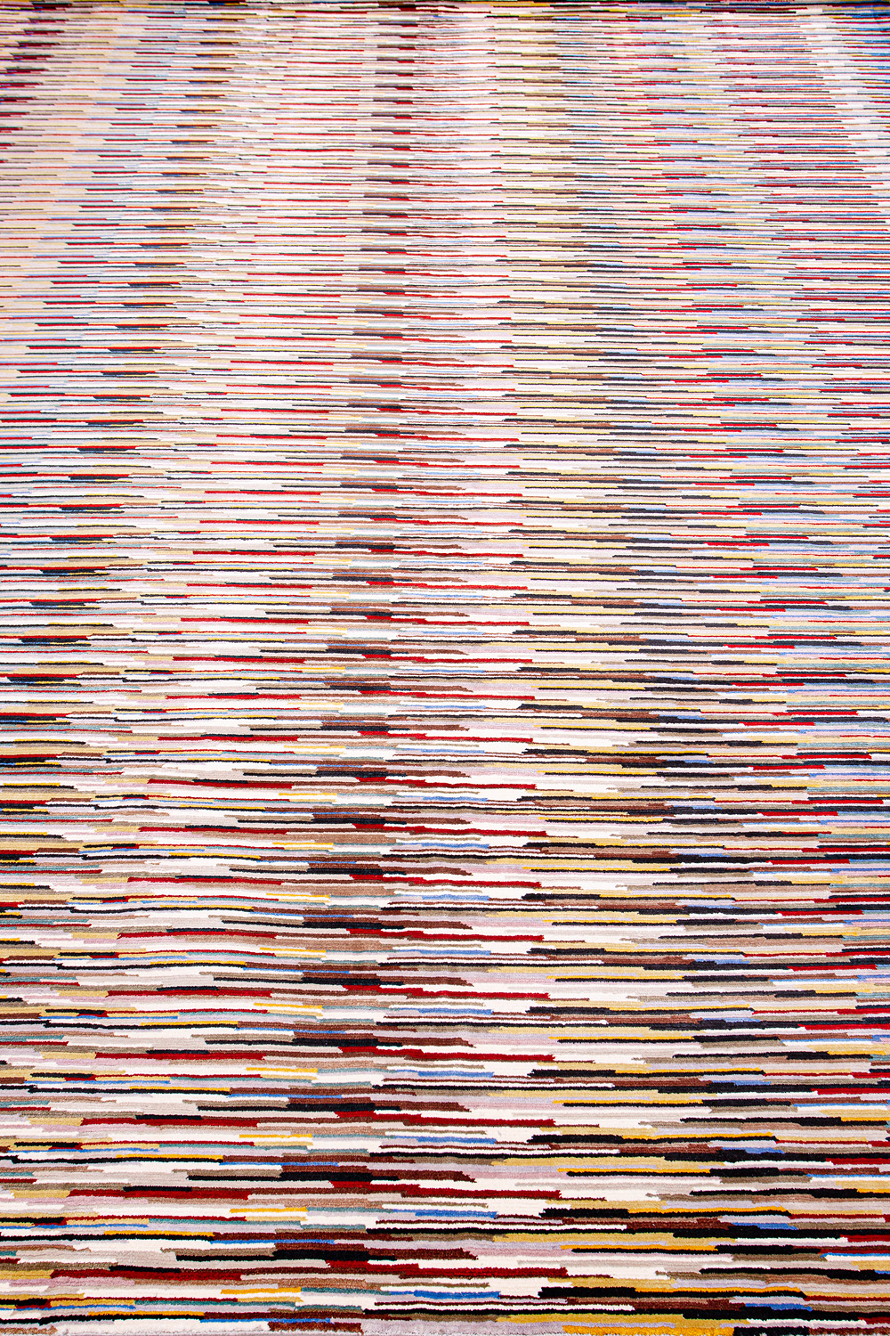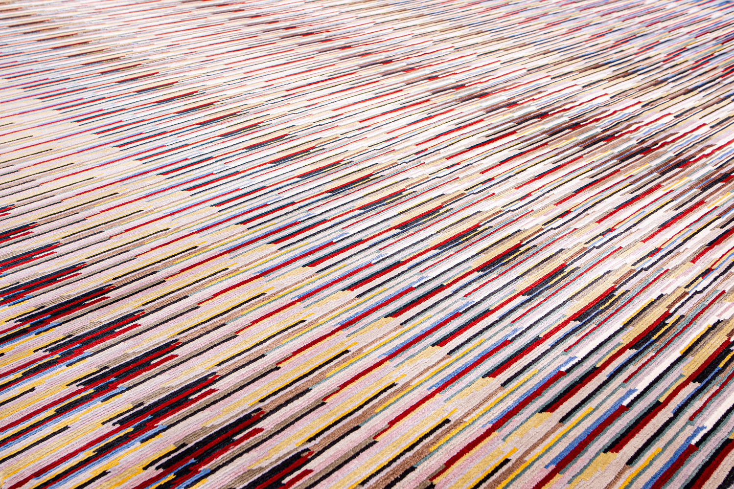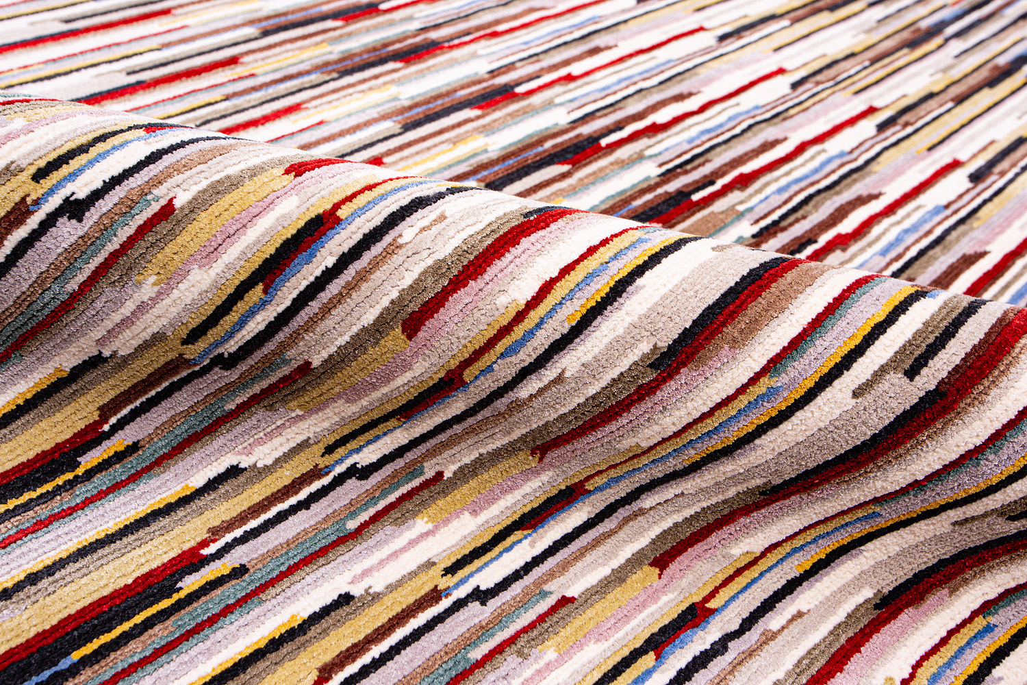 Крупные рисунки в виде линий и фигур на фактурной поверхности ковра превращаются в выразительные композиции. Они акцентируют на себе внимание и добавляют динамики в современный интерьер. Комбинации разных фигур и повторяющийся орнамент задают ритмическую основу пространству, привносят в него оригинальные оптические иллюзии.