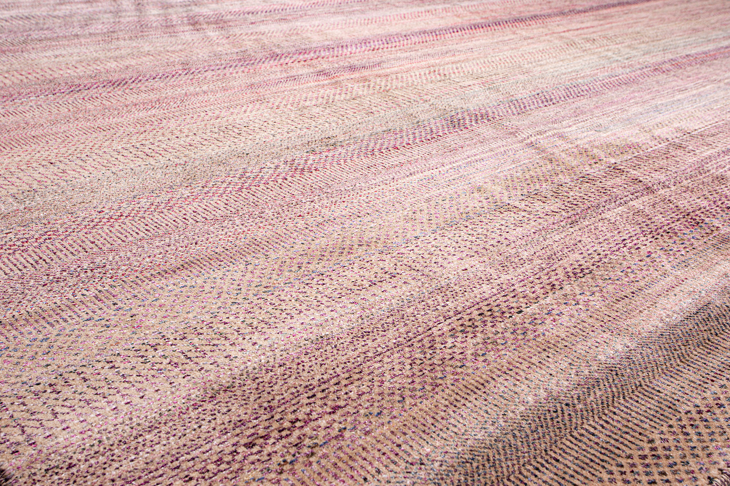 Дизайн ковров напоминает современные полотна художников-абстракционистов и производит столь же яркое и незабываемое впечатление в интерьере. Живописный эффект и необычная фактура зависят от выбора материала: натуральной шерсти, шёлка и от их сочетаний друг с другом. Ковры ткутся вручную в лучших мастерских Индии и Пакистана.