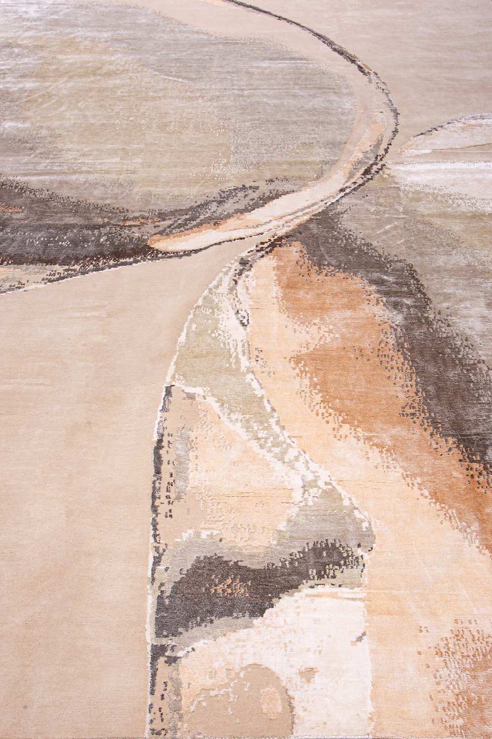 Дизайн ковров напоминает современные полотна художников-абстракционистов и производит столь же яркое и незабываемое впечатление в интерьере. Живописный эффект и необычная фактура зависят от выбора материала: натуральной шерсти, шёлка и от их сочетаний друг с другом. Ковры ткутся вручную в лучших мастерских Индии и Пакистана.