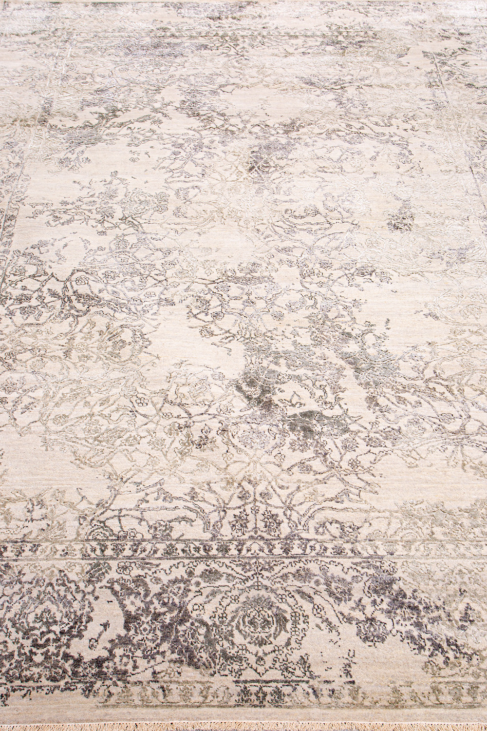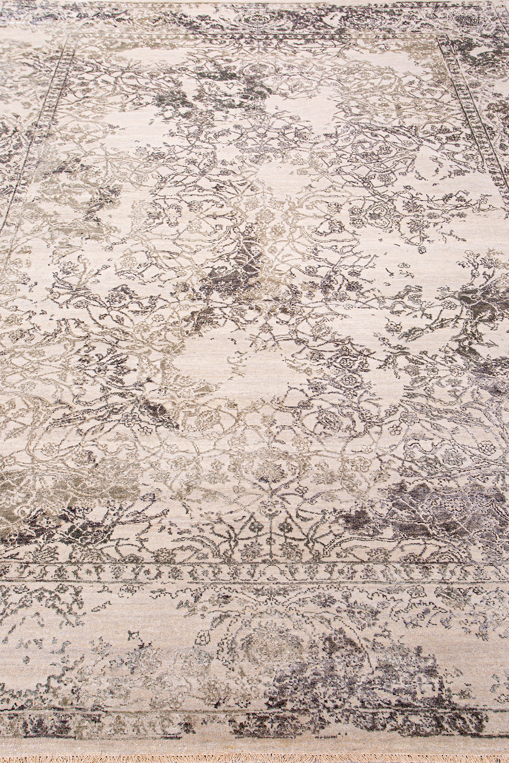 Такой эффект достигается за счет специальной техники плетения, а также обработки, которой подвергают ковры, чтобы они выглядели как антикварные — то есть дорого, элегантно и модно.
