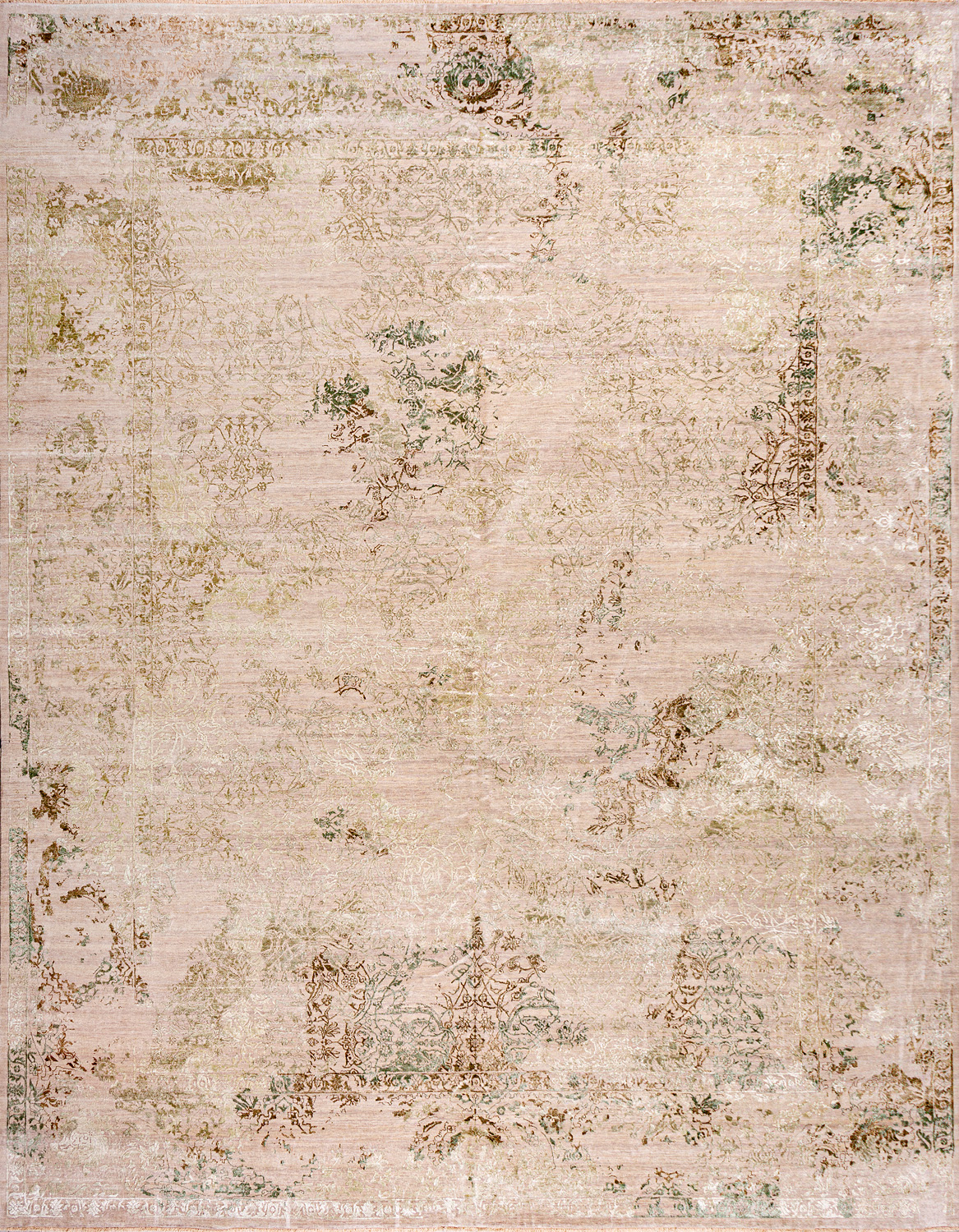 Время и природа — два главных стержня. Впечатление такое, что краски словно стёрлись, а если они и сохраняют яркость, то рисунок сохранился не весь, какие‑то фрагменты утрачены — такова типология этого столь актуального сегодня ковра ручной работы из коллекции illusion.
