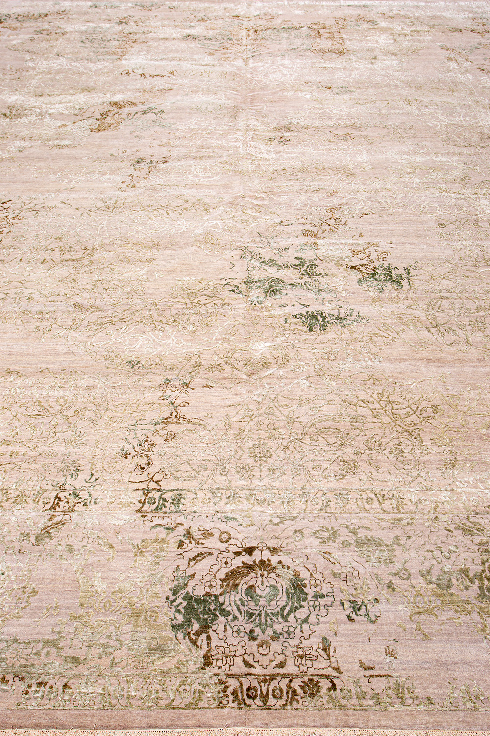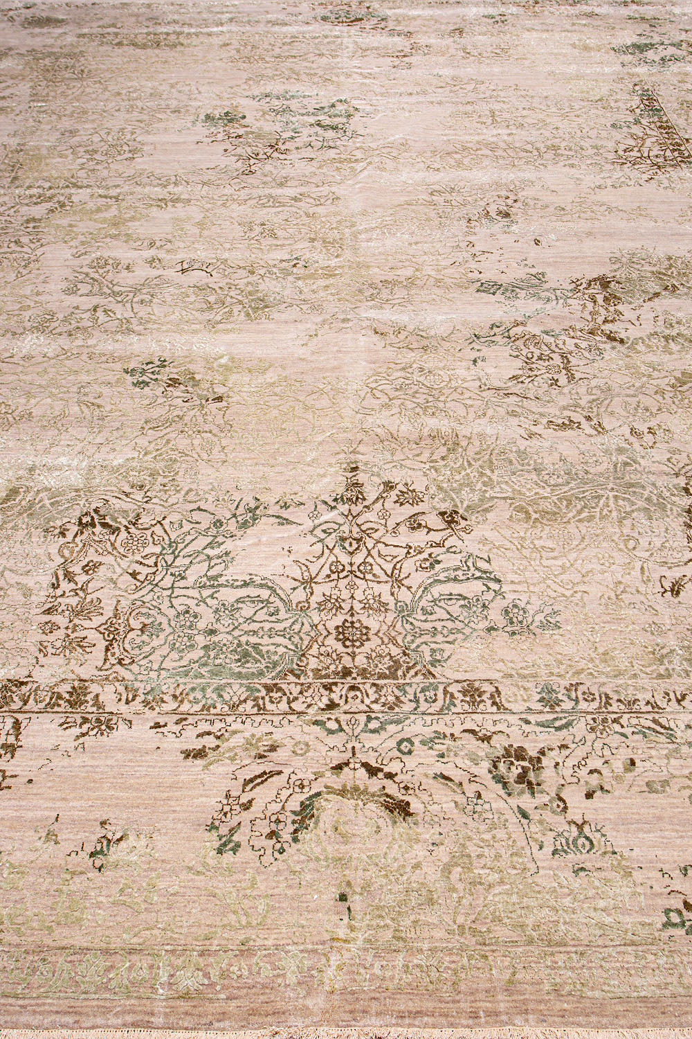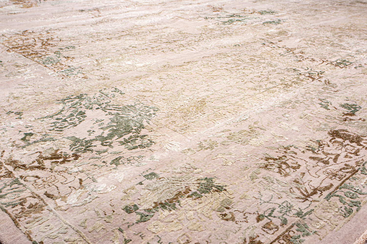 Такой эффект достигается за счет специальной техники плетения, а также обработки, которой подвергают ковры, чтобы они выглядели как антикварные — то есть дорого, элегантно и модно.
