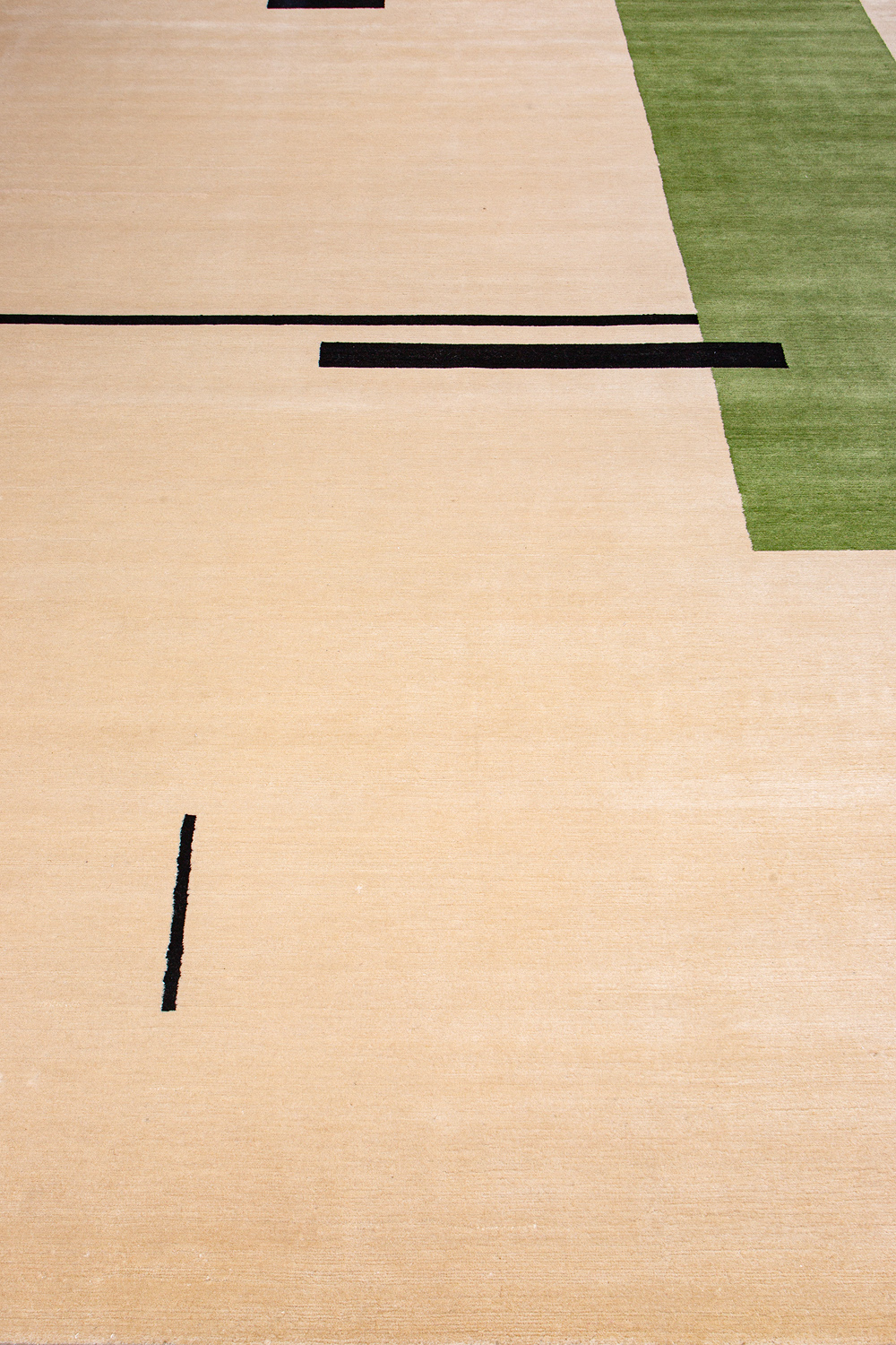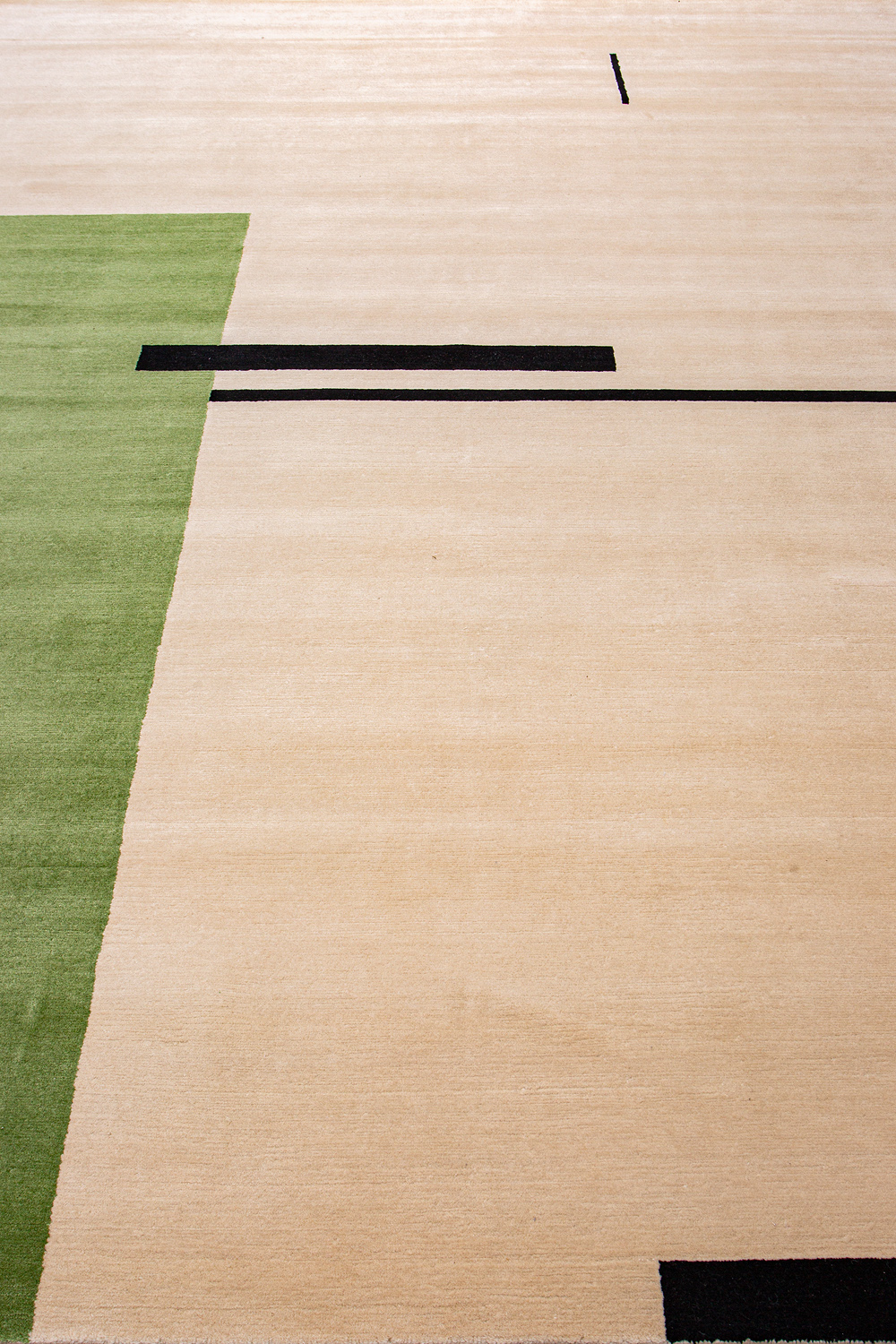 Крупные рисунки в виде линий и фигур на фактурной поверхности ковра превращаются в выразительные композиции. Они акцентируют на себе внимание и добавляют динамики в современный интерьер. Комбинации разных фигур и повторяющийся орнамент задают ритмическую основу пространству, привносят в него оригинальные оптические иллюзии.