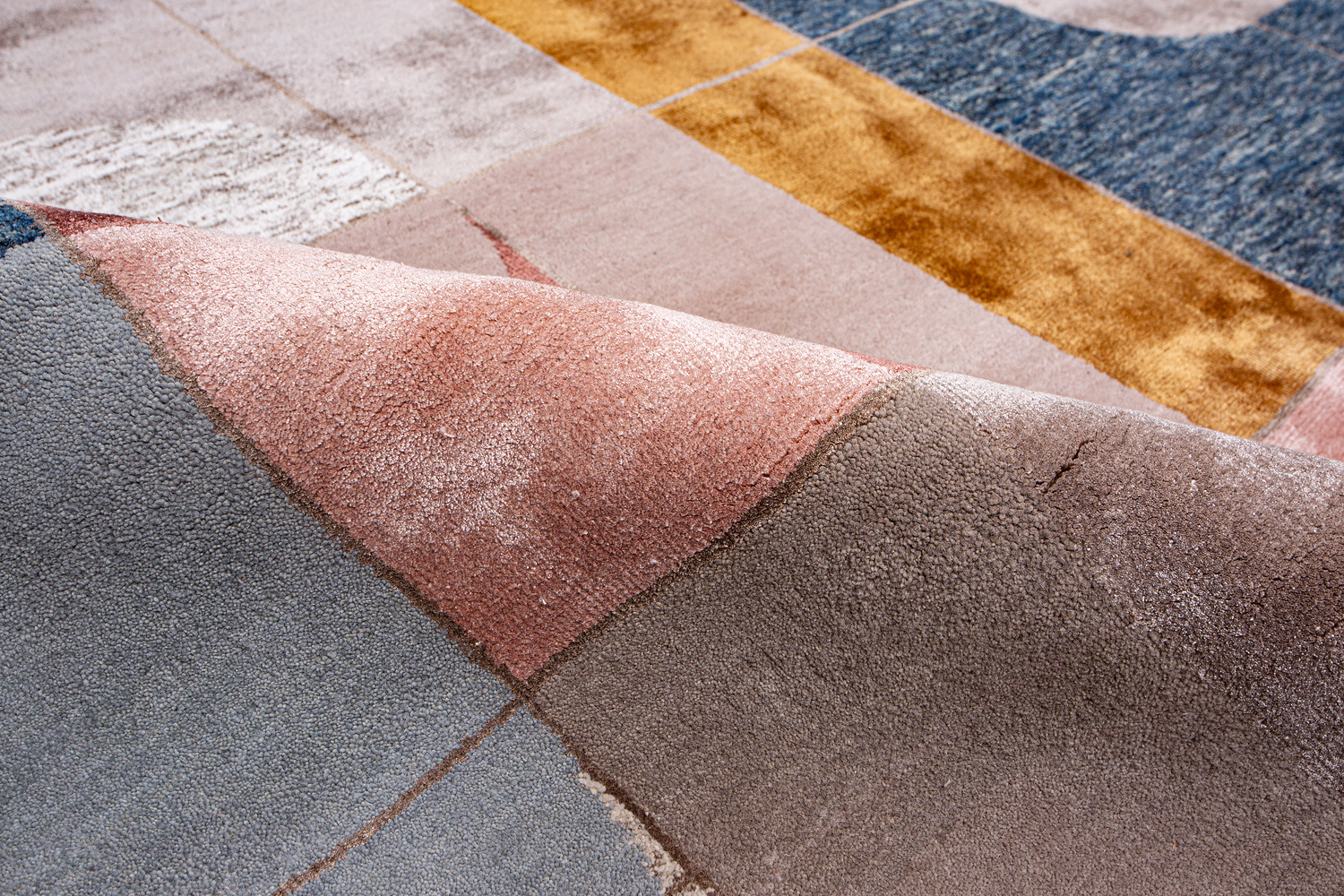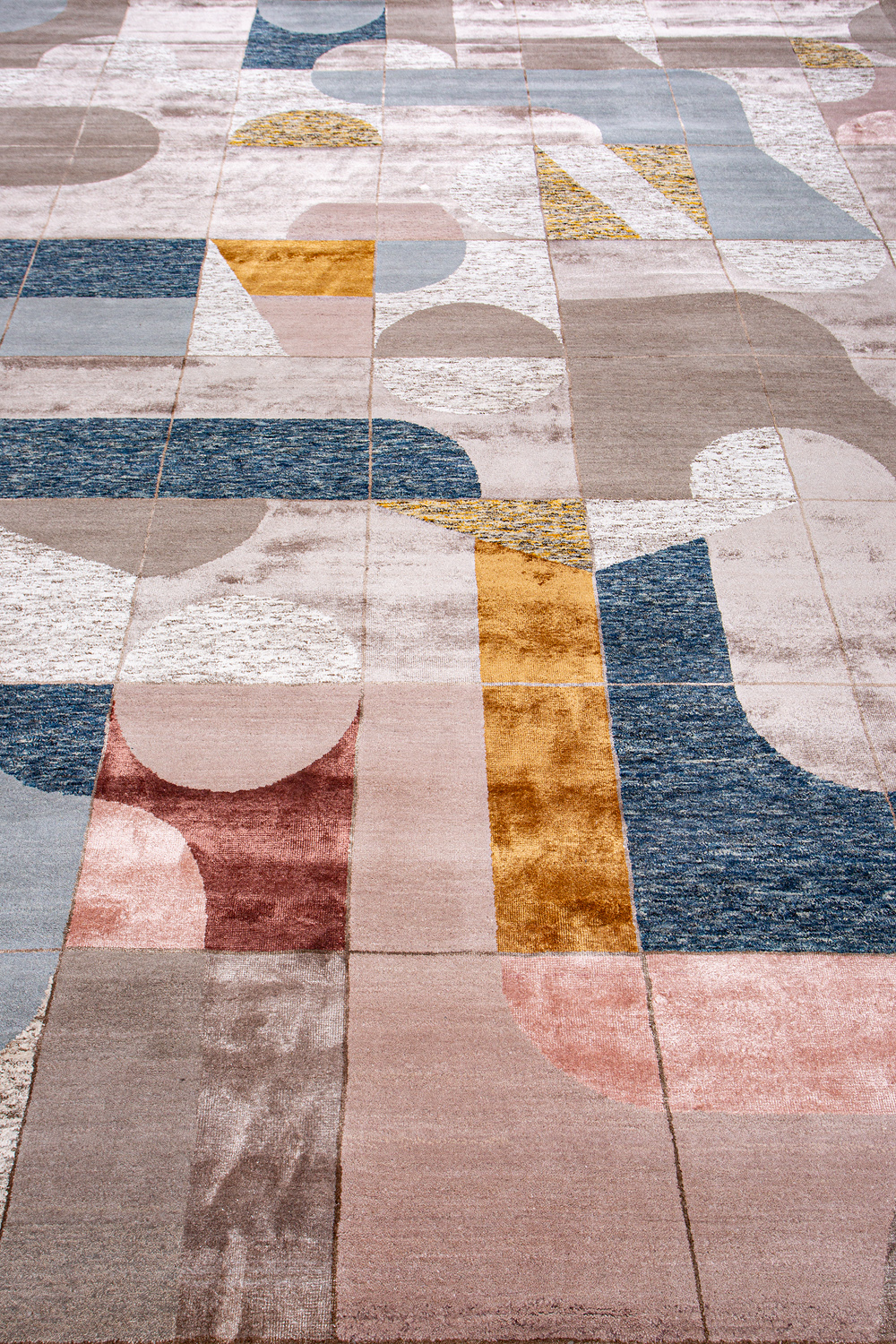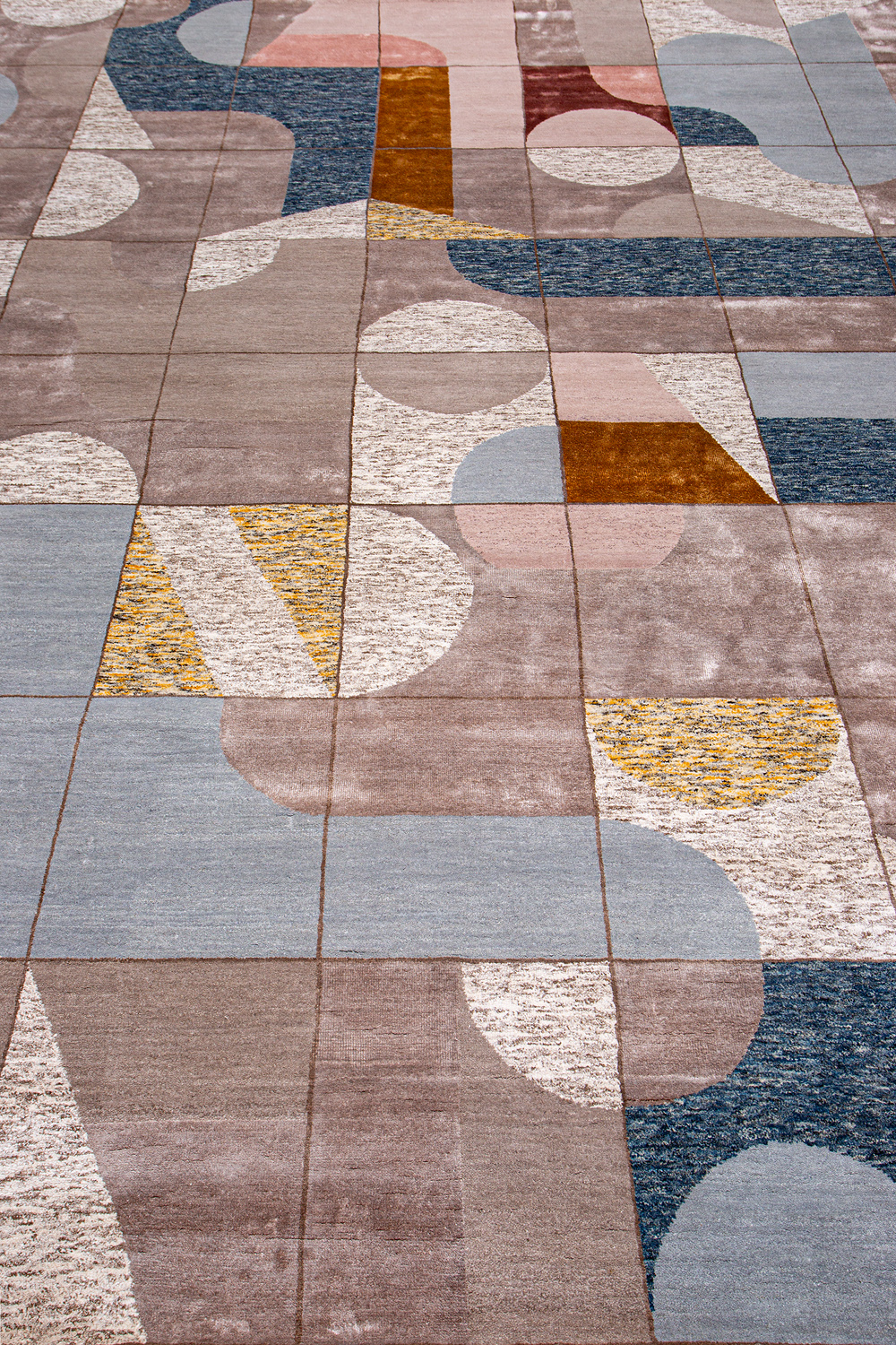 Крупные рисунки в виде линий и фигур на фактурной поверхности ковра превращаются в выразительные композиции. Они акцентируют на себе внимание и добавляют динамики в современный интерьер. Комбинации разных фигур и повторяющийся орнамент задают ритмическую основу пространству, привносят в него оригинальные оптические иллюзии.