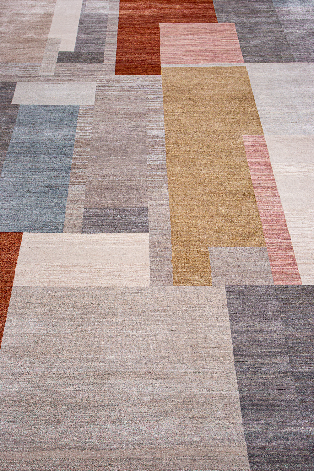 Крупные рисунки в виде линий и фигур на фактурной поверхности ковра превращаются в выразительные композиции. Они акцентируют на себе внимание и добавляют динамики в современный интерьер. Комбинации разных фигур и повторяющийся орнамент задают ритмическую основу пространству, привносят в него оригинальные оптические иллюзии.