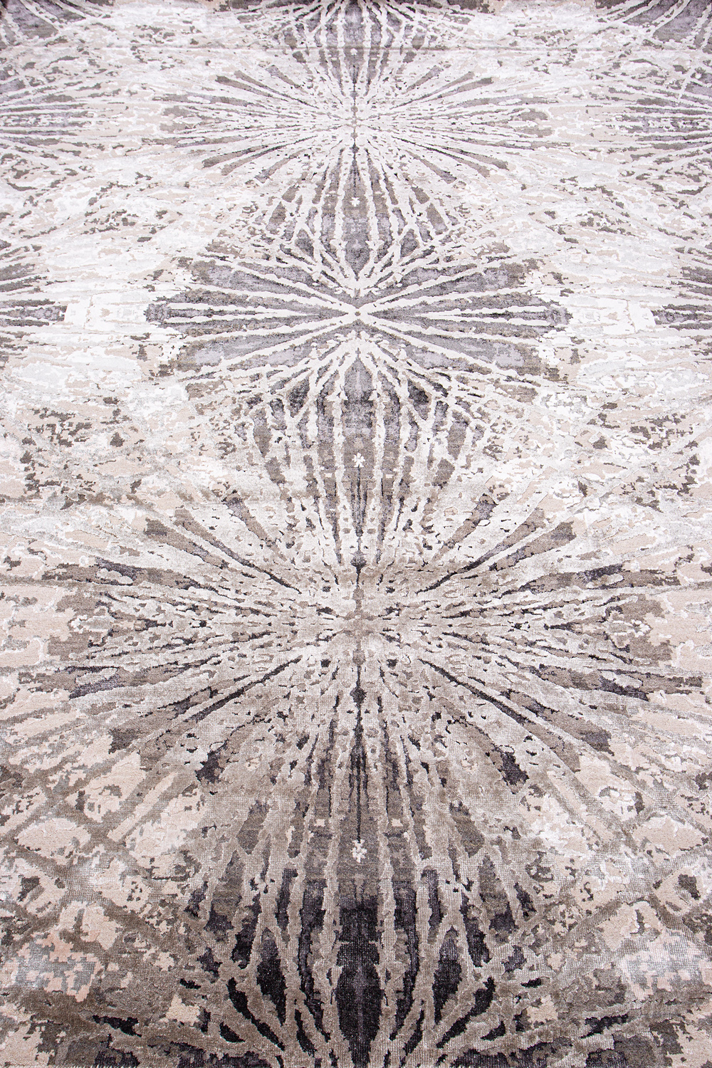 Дизайн ковров напоминает современные полотна художников-абстракционистов и производит столь же яркое и незабываемое впечатление в интерьере. Живописный эффект и необычная фактура зависят от выбора материала: натуральной шерсти, шёлка и от их сочетаний друг с другом. Ковры ткутся вручную в лучших мастерских Индии и Пакистана.