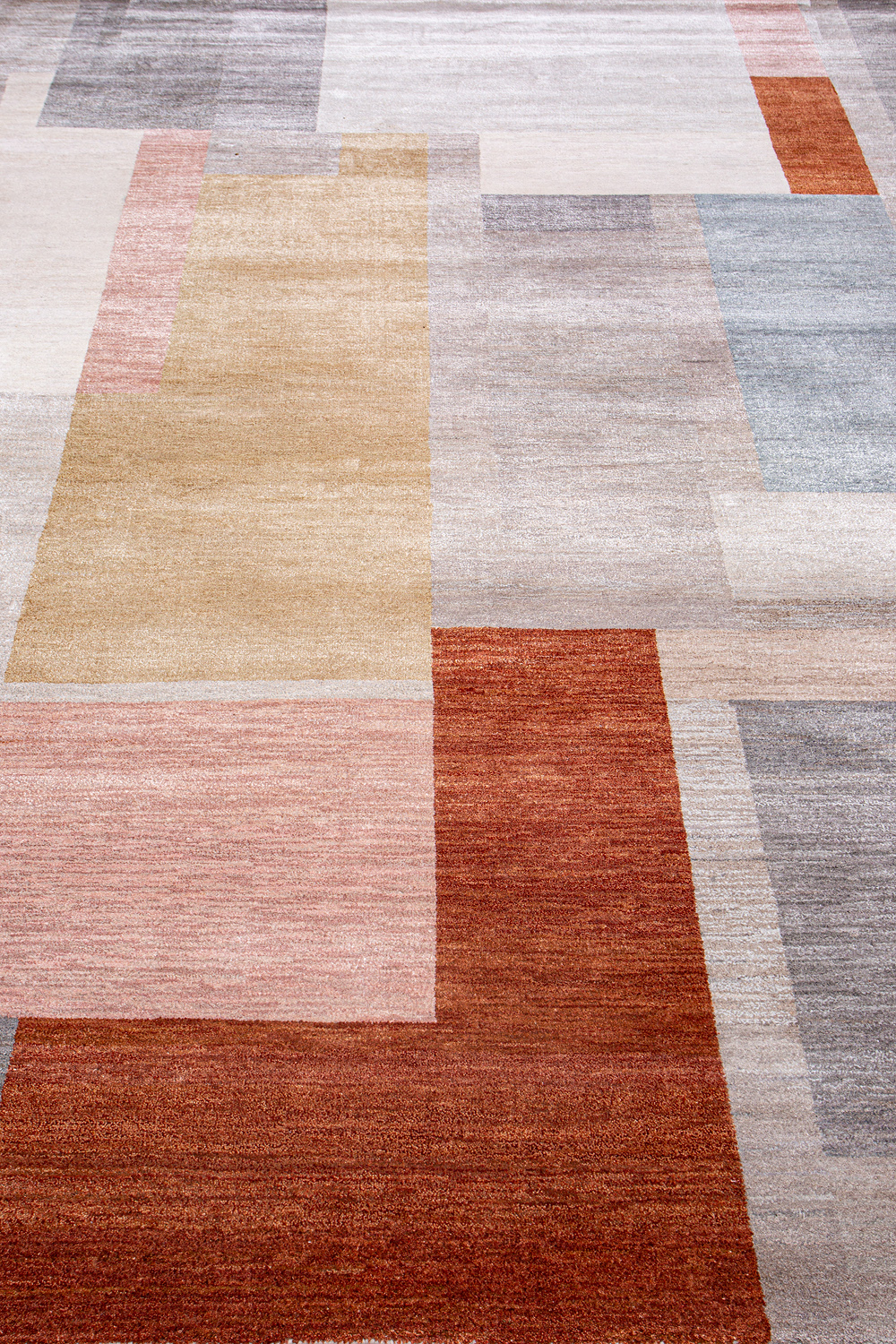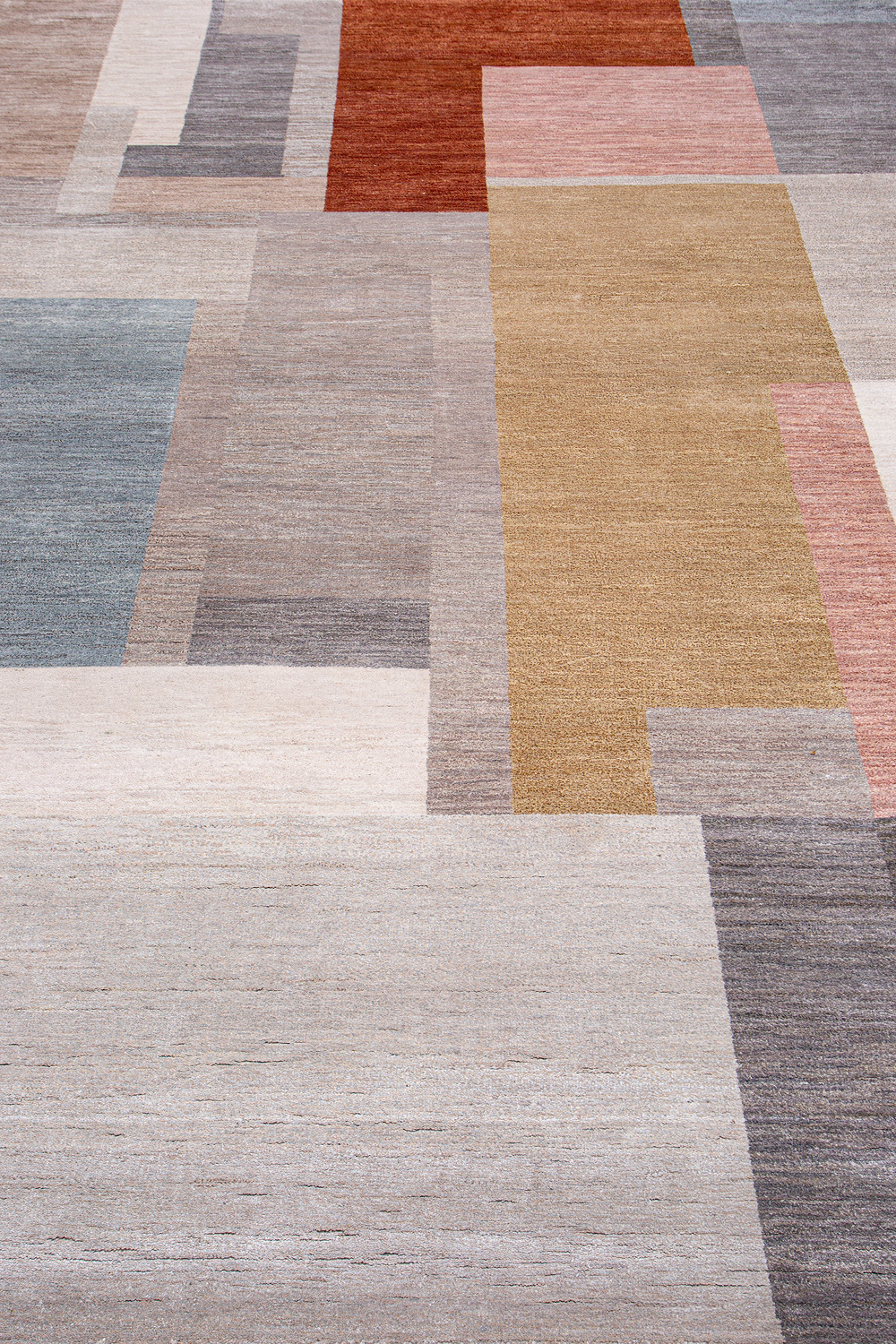 Крупные рисунки в виде линий и фигур на фактурной поверхности ковра превращаются в выразительные композиции. Они акцентируют на себе внимание и добавляют динамики в современный интерьер. Комбинации разных фигур и повторяющийся орнамент задают ритмическую основу пространству, привносят в него оригинальные оптические иллюзии.
