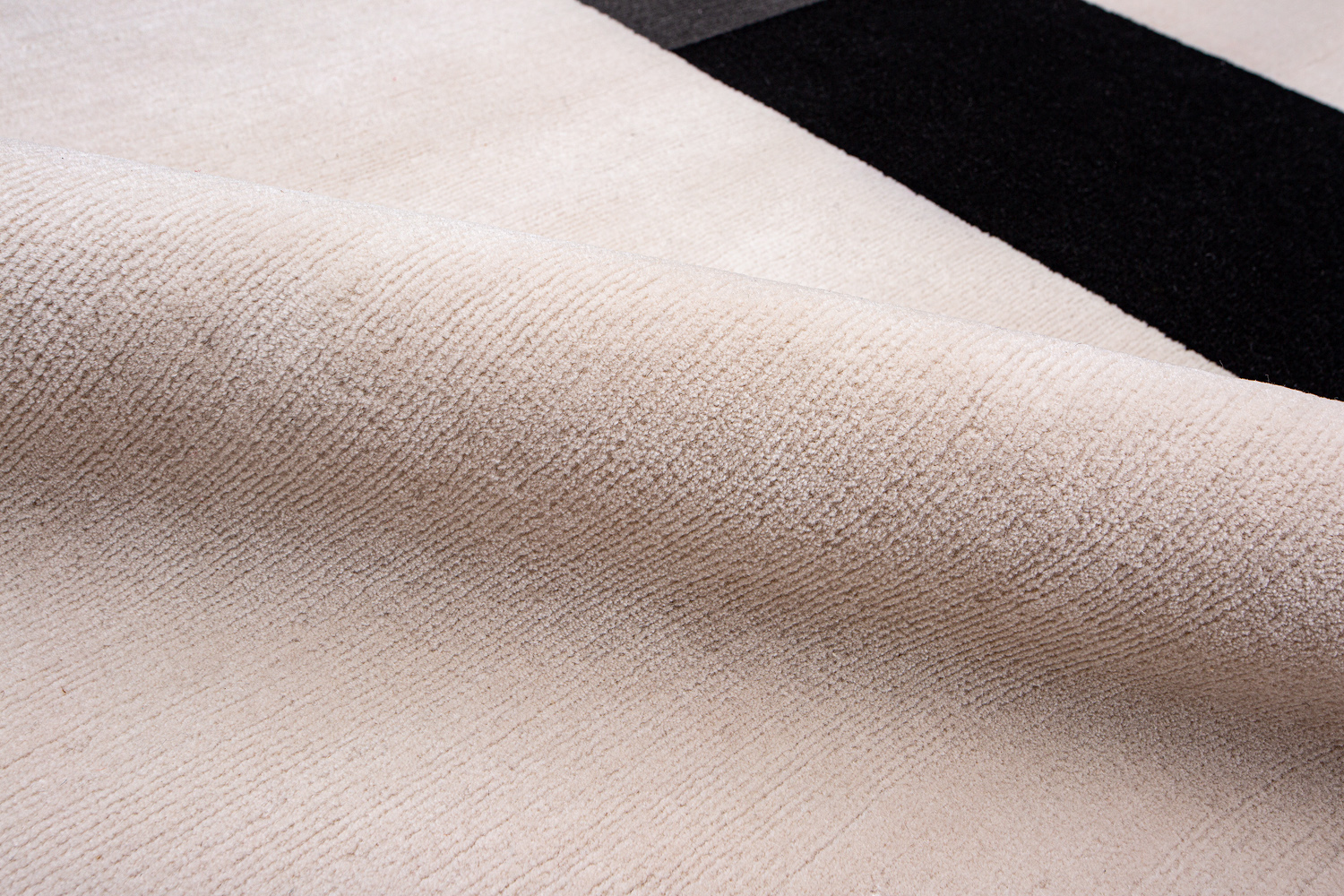 Крупные рисунки в виде линий и фигур на фактурной поверхности ковра превращаются в выразительные композиции. Они акцентируют на себе внимание и добавляют динамики в современный интерьер. Комбинации разных фигур и повторяющийся орнамент задают ритмическую основу пространству, привносят в него оригинальные оптические иллюзии.