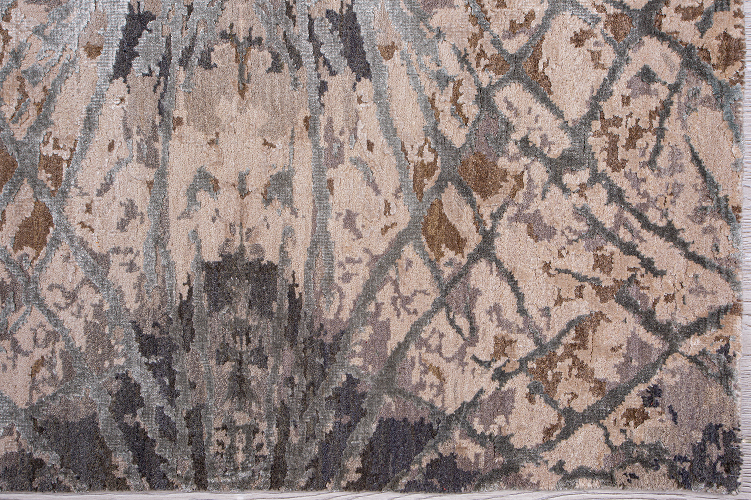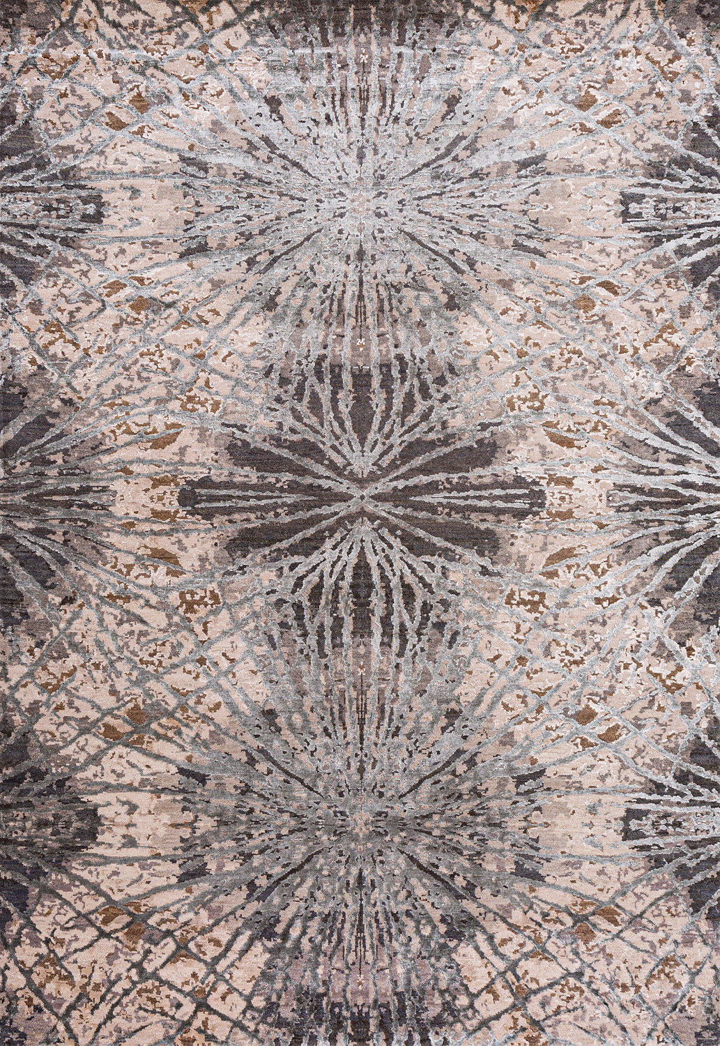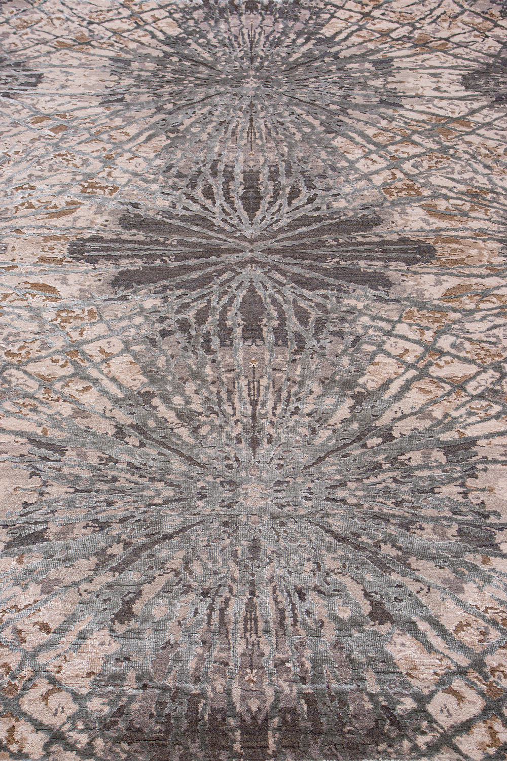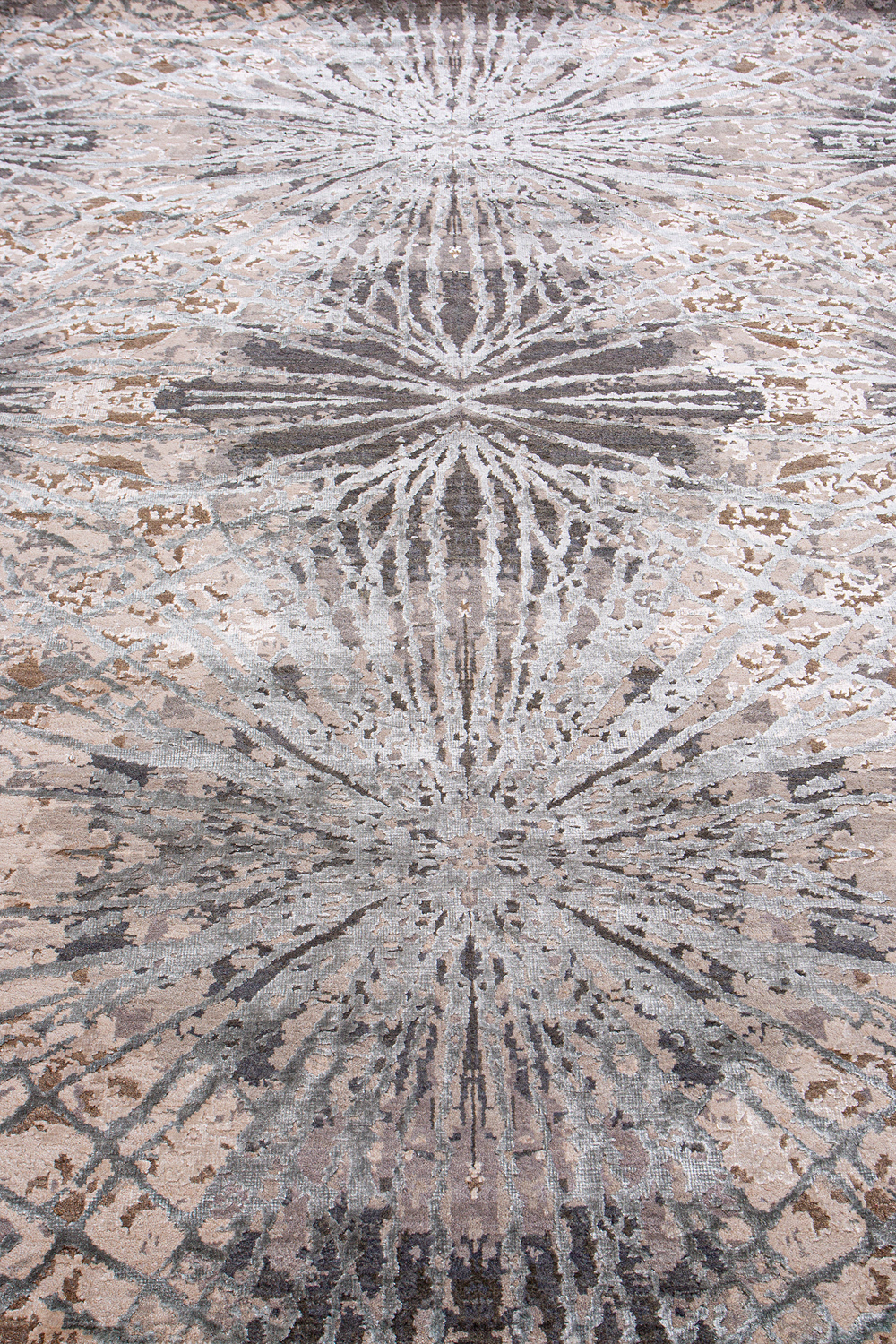 Дизайн ковров напоминает современные полотна художников-абстракционистов и производит столь же яркое и незабываемое впечатление в интерьере. Живописный эффект и необычная фактура зависят от выбора материала: натуральной шерсти, шёлка и от их сочетаний друг с другом. Ковры ткутся вручную в лучших мастерских Индии и Пакистана.