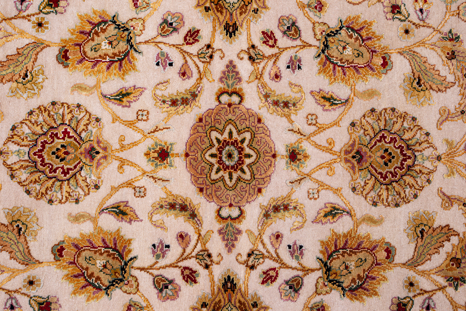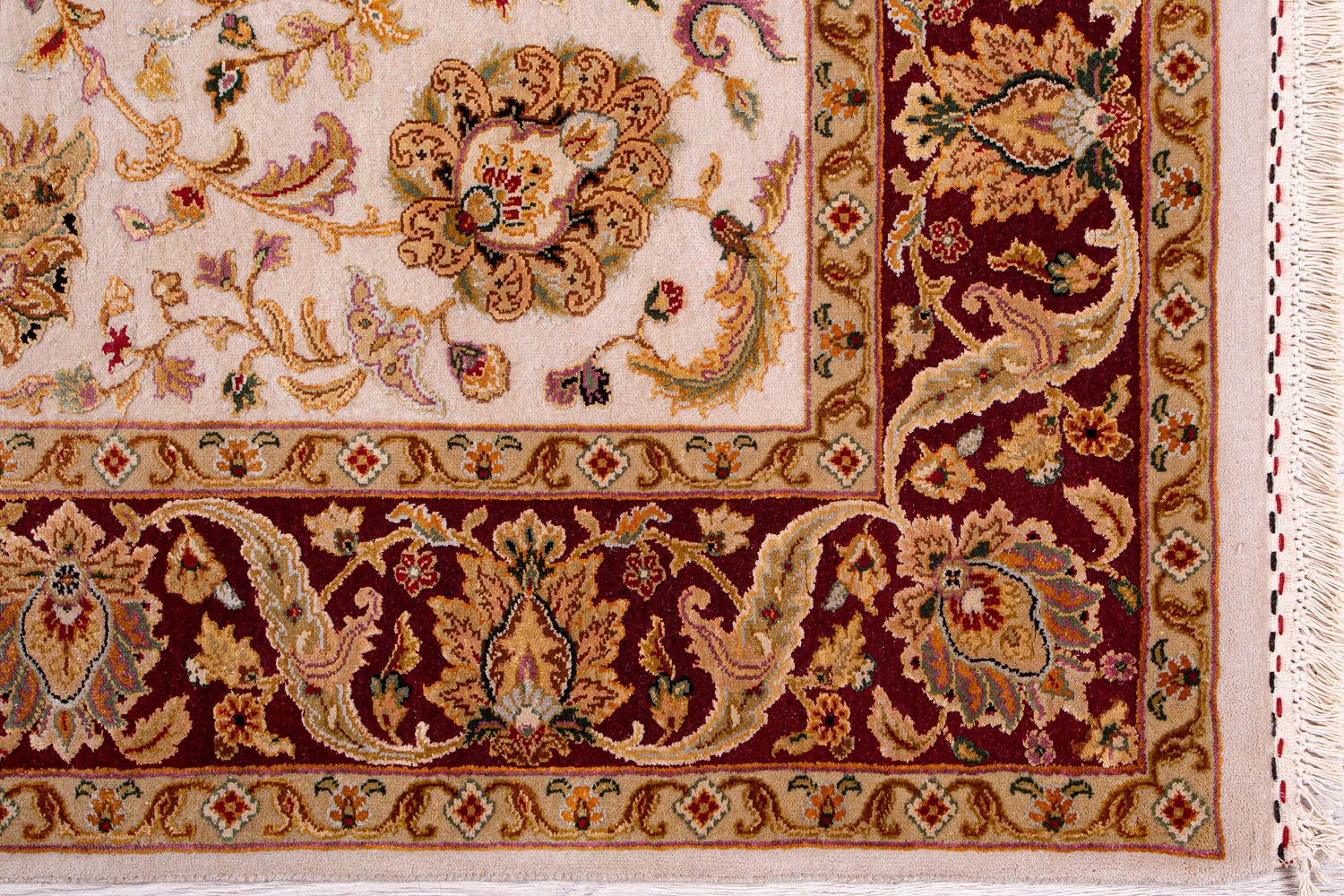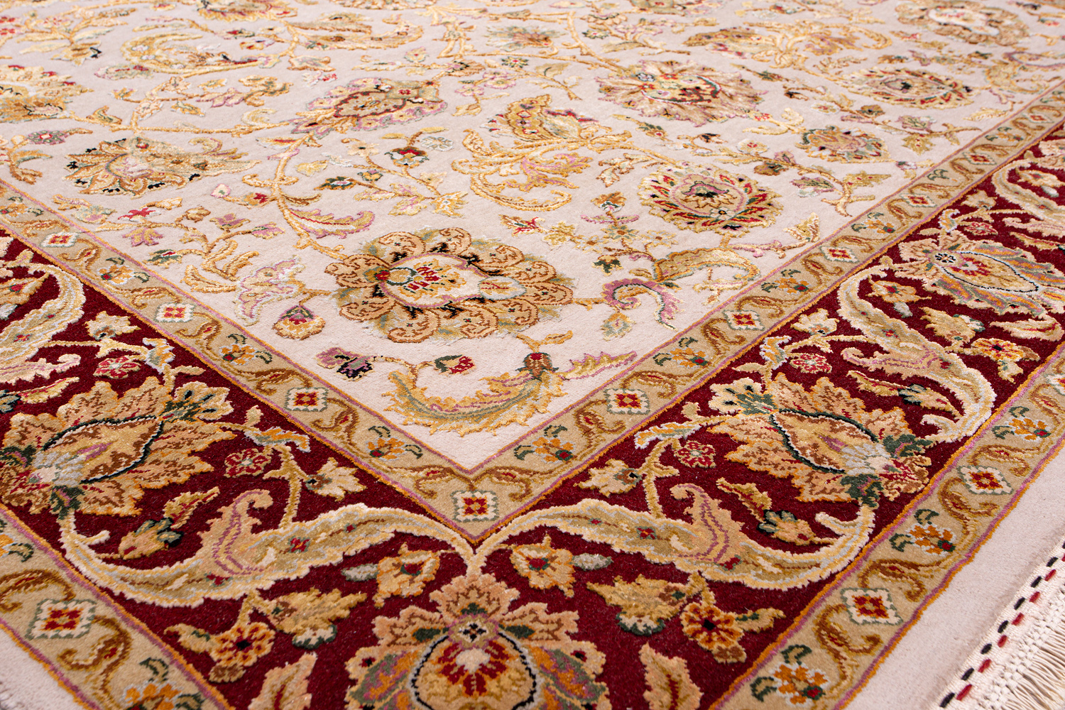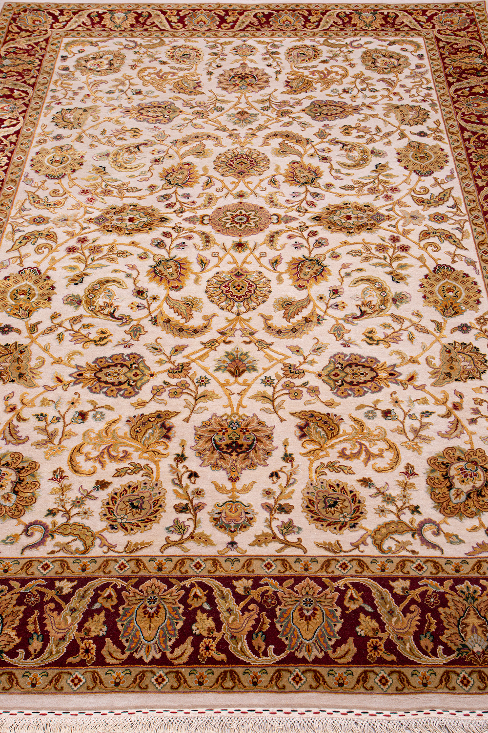 Более пяти веков назад в городе Агра зародилась знаменитая индийская школа ковроткачества, прославившаяся не меньше, чем расположенный здесь же Тадж-Махал. Мощное персидское влияние, помноженное на местный колорит, привело к появлению оригинальных орнаментов с богатыми растительными узорами — причудливым цветам, ветвям и листьям, разбросанным по всему полю ковра.