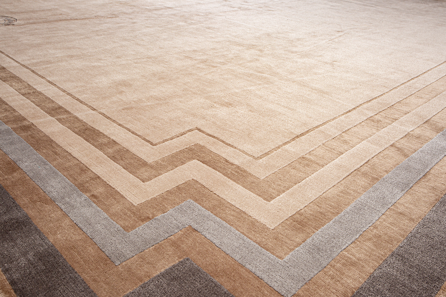 Крупные рисунки в виде линий и фигур на фактурной поверхности ковра превращаются в выразительные композиции. Они акцентируют на себе внимание и добавляют динамики в современный интерьер. Комбинации разных фигур и повторяющийся орнамент задают ритмическую основу пространству, привносят в него оригинальные оптические иллюзии.