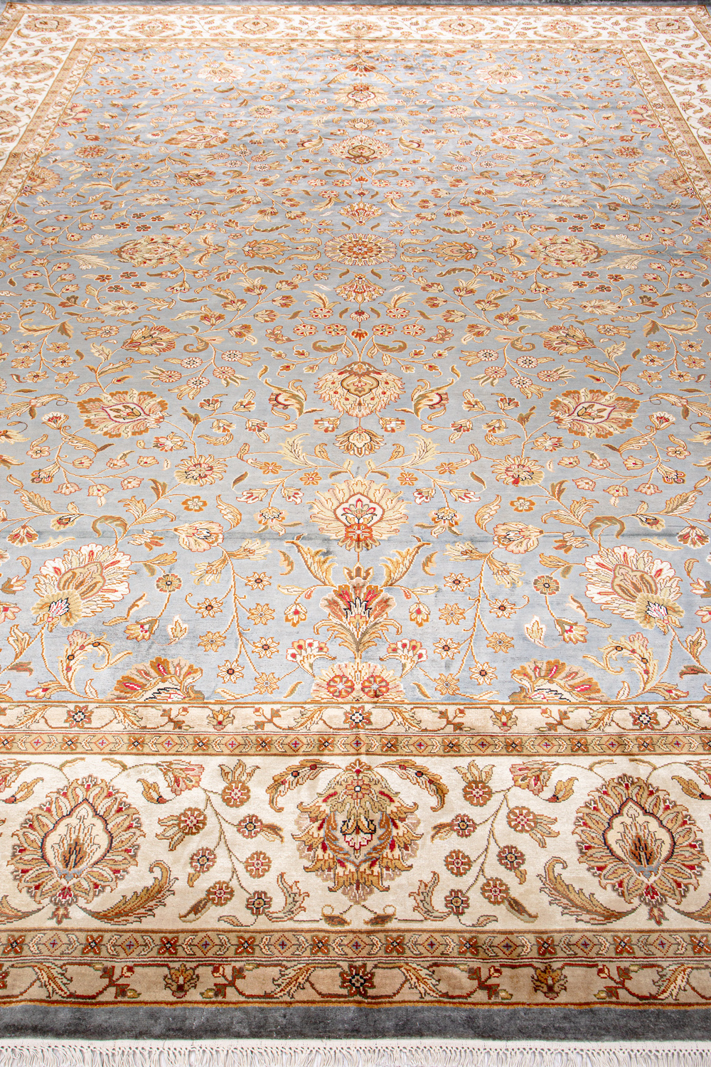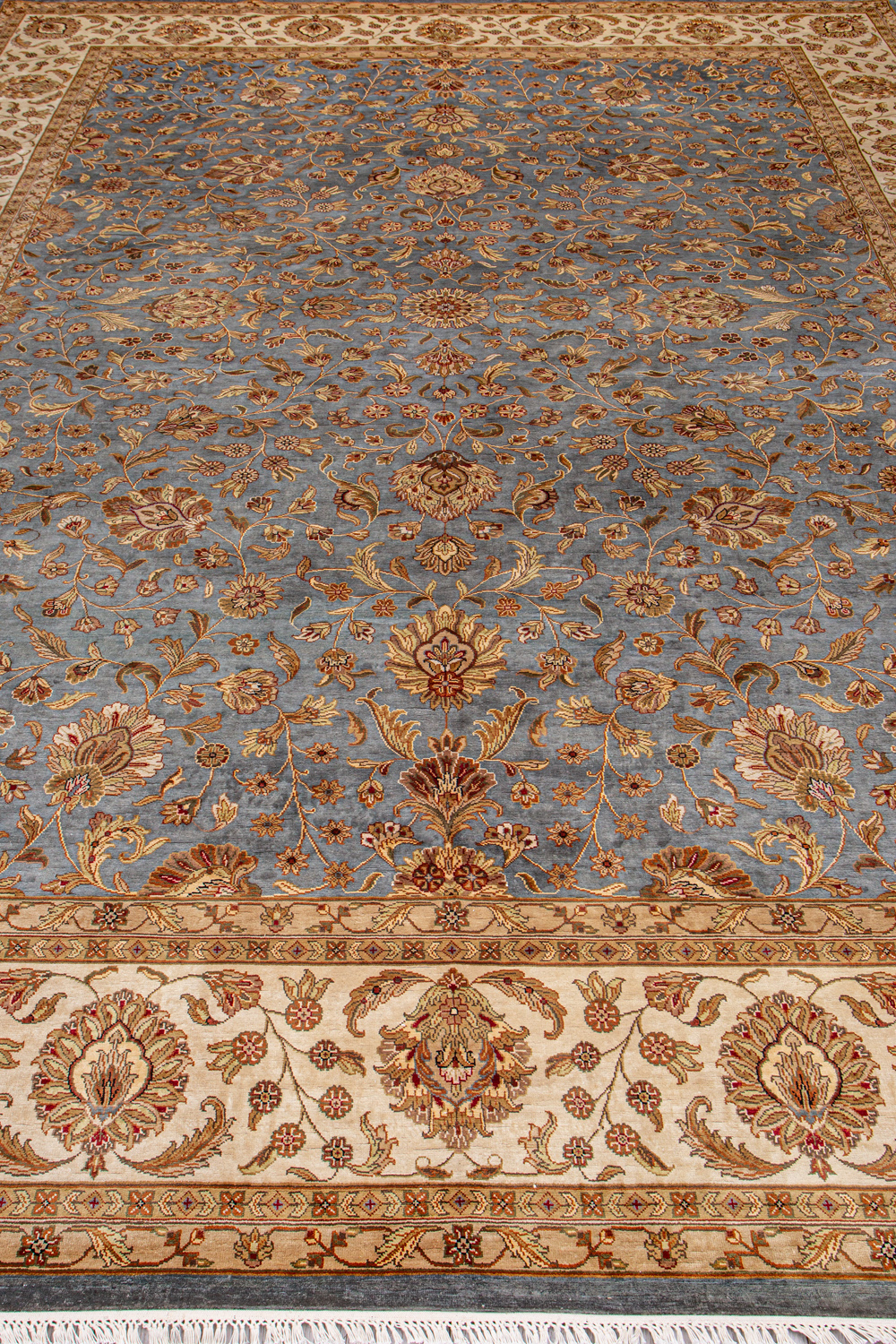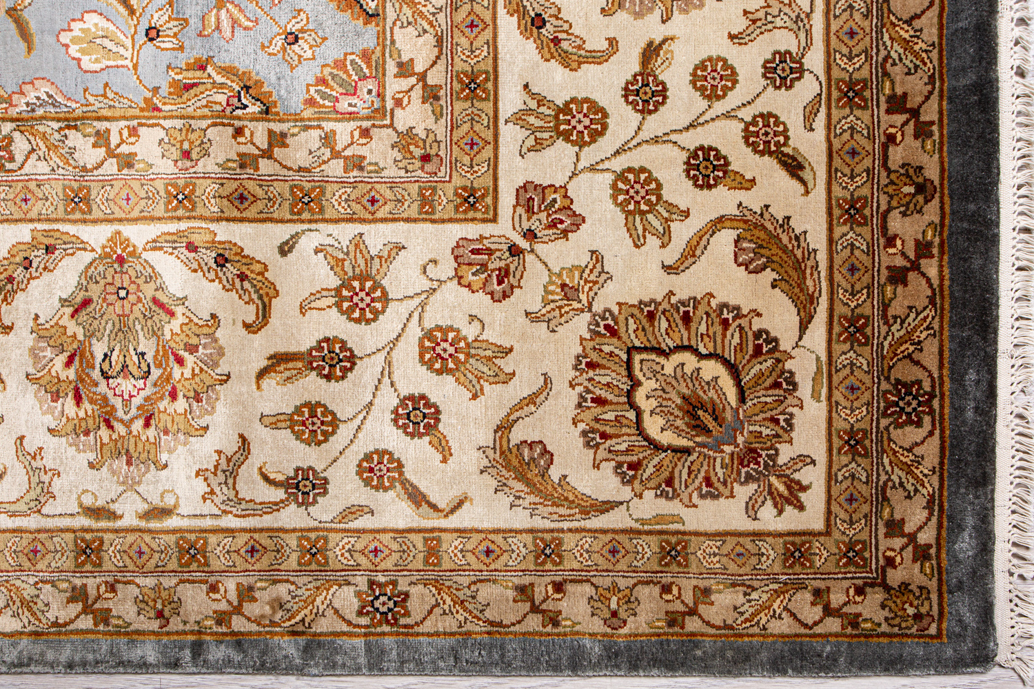 Каждый ковер в этой коллекции соткан вручную из шерсти и арт шёлка опытными индийскими мастерами.