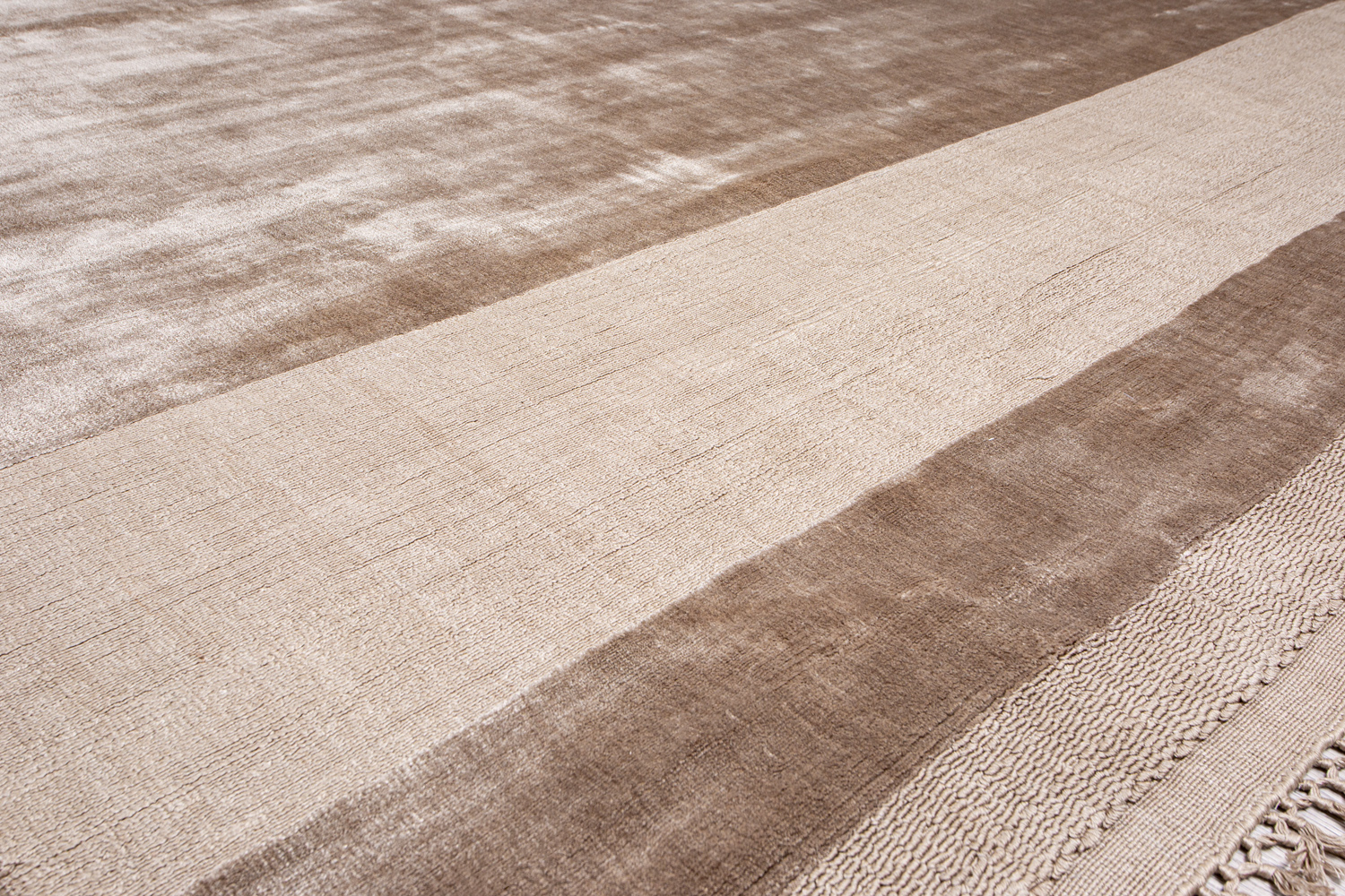 Идеальная база для интерьера — коллекция ковров Mono. Это однотонные ковры самых разных оттенков — от молочно-белых до угольно-черных. Они создаются преимущественно из шерсти и арт-шелка, и благодаря световым бликам на поверхности, обладают волшебным эффектом вибрирующего цвета.