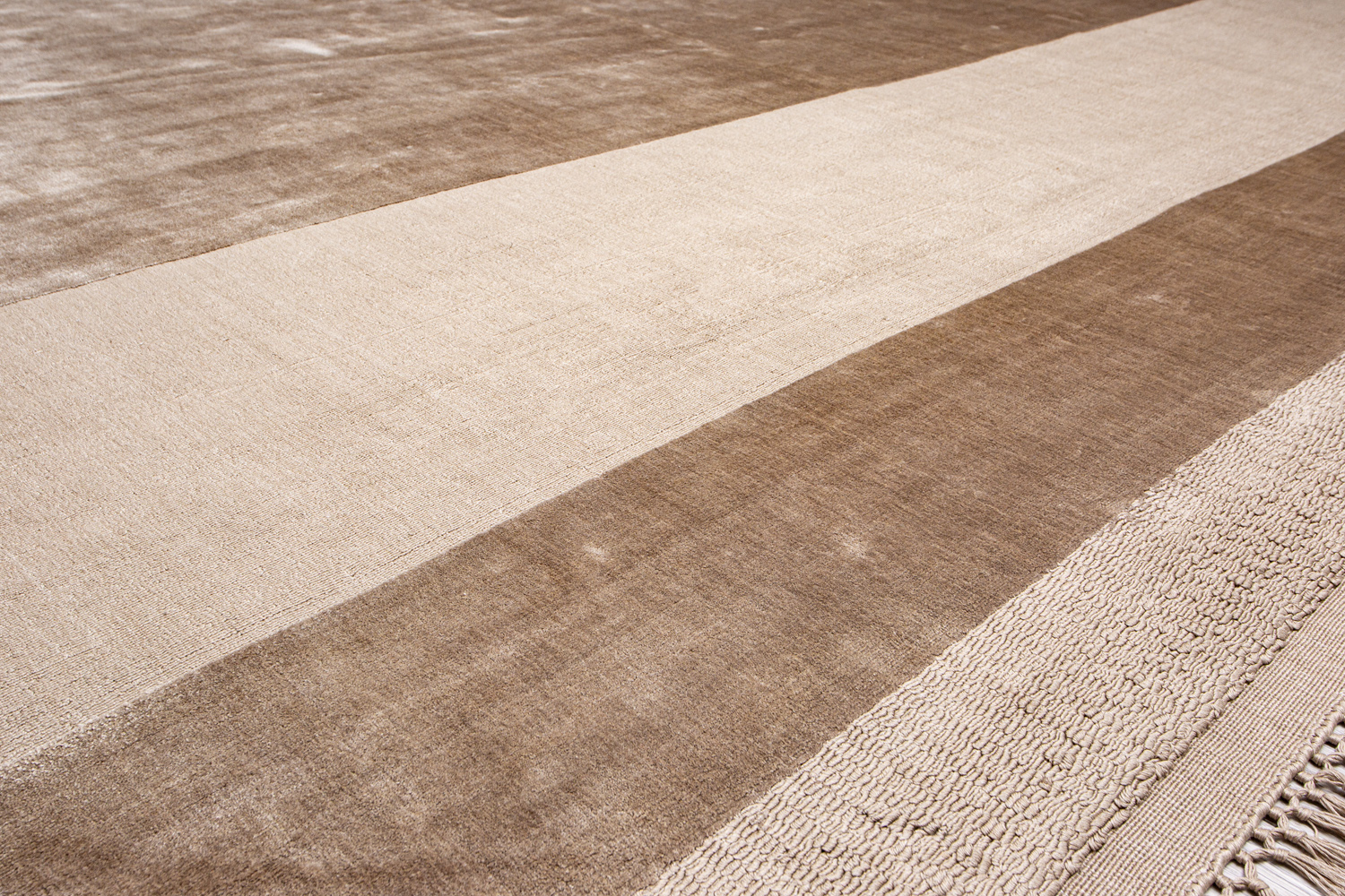 Идеальная база для интерьера — коллекция ковров Mono. Это однотонные ковры самых разных оттенков — от молочно-белых до угольно-черных. Они создаются преимущественно из шерсти и арт-шелка, и благодаря световым бликам на поверхности, обладают волшебным эффектом вибрирующего цвета.