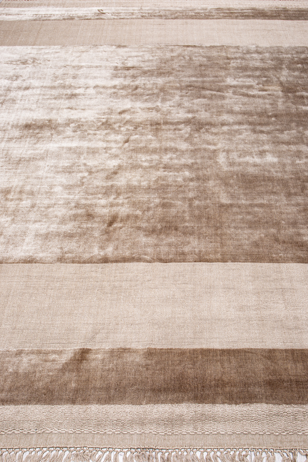 Идеальная база для интерьера — коллекция ковров Mono. Это однотонные ковры самых разных оттенков — от молочно-белых до угольно-черных. Они создаются преимущественно из шерсти и арт-шелка, и благодаря световым бликам на поверхности, обладают волшебным эффектом вибрирующего цвета.