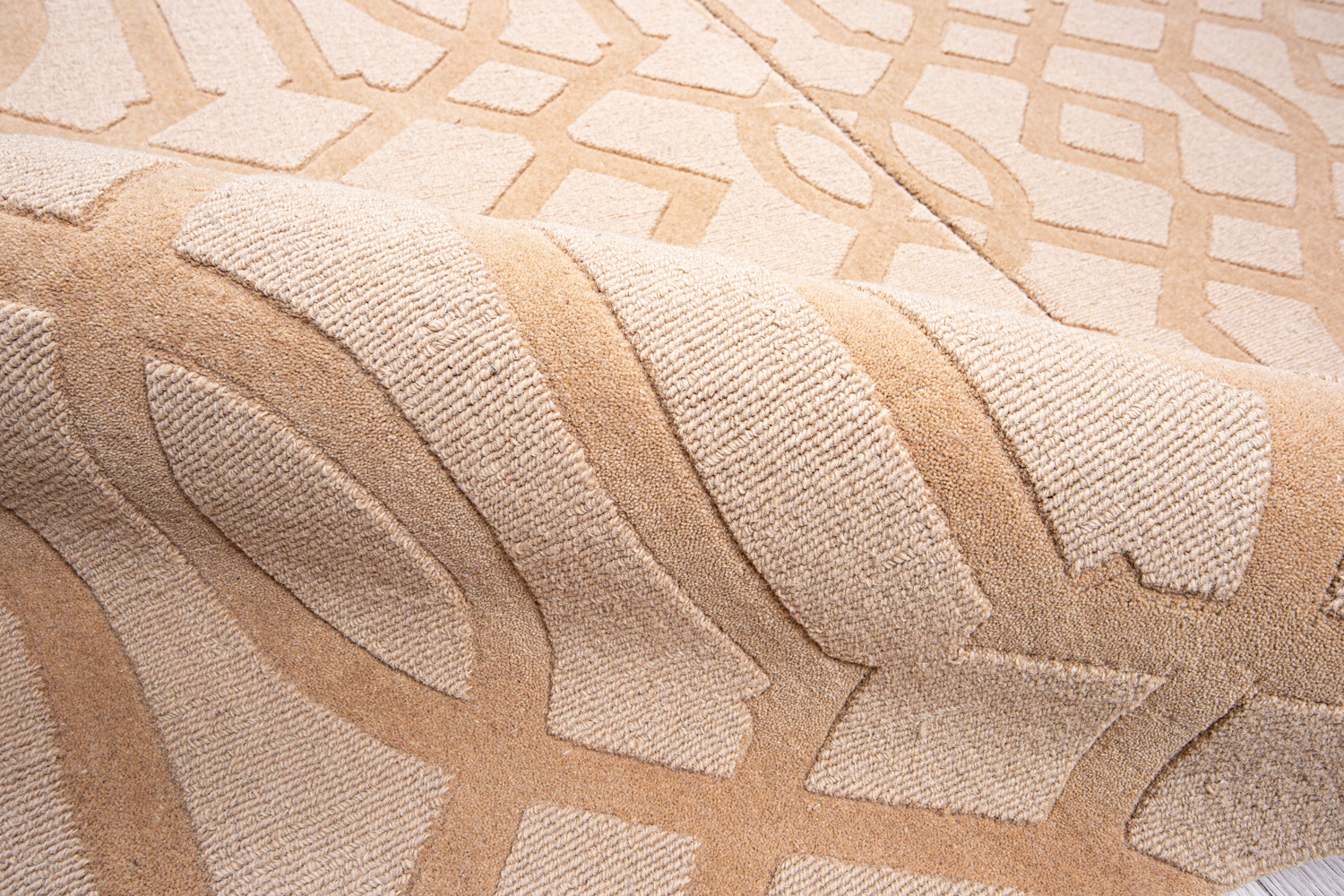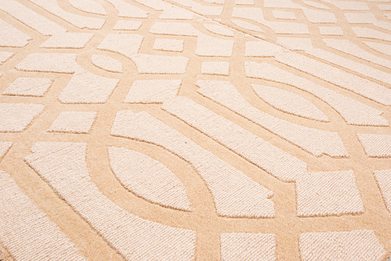 Крупные рисунки в виде линий и фигур на фактурной поверхности ковра превращаются в выразительные композиции. Они акцентируют на себе внимание и добавляют динамики в современный интерьер. Комбинации разных фигур и повторяющийся орнамент задают ритмическую основу пространству, привносят в него оригинальные оптические иллюзии.