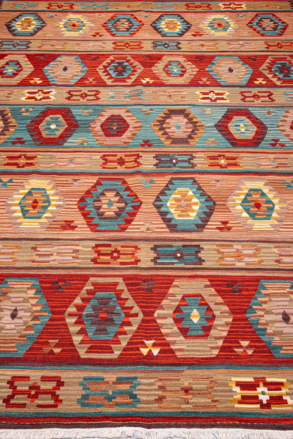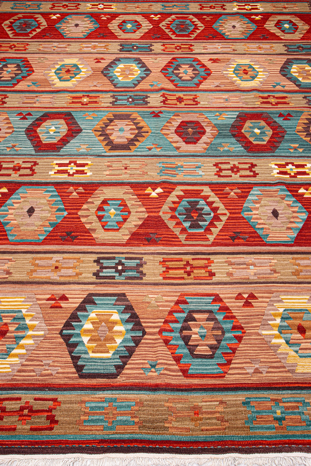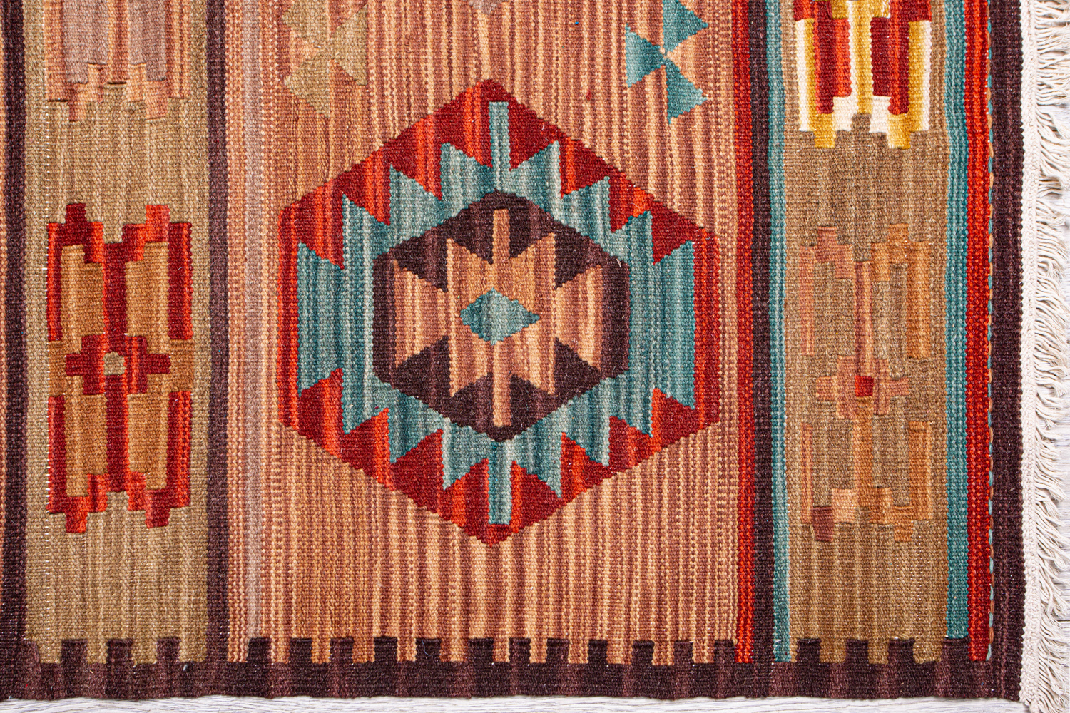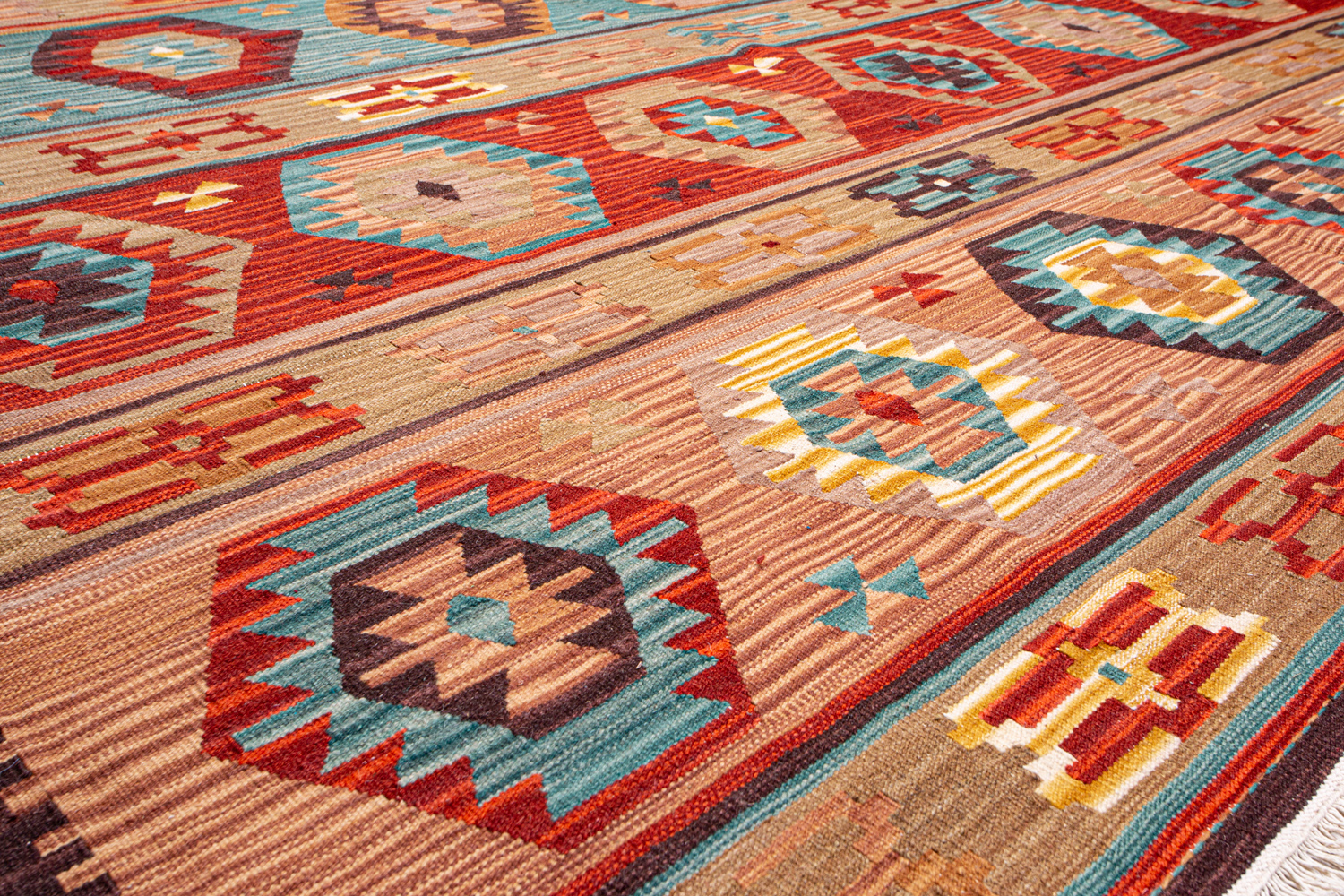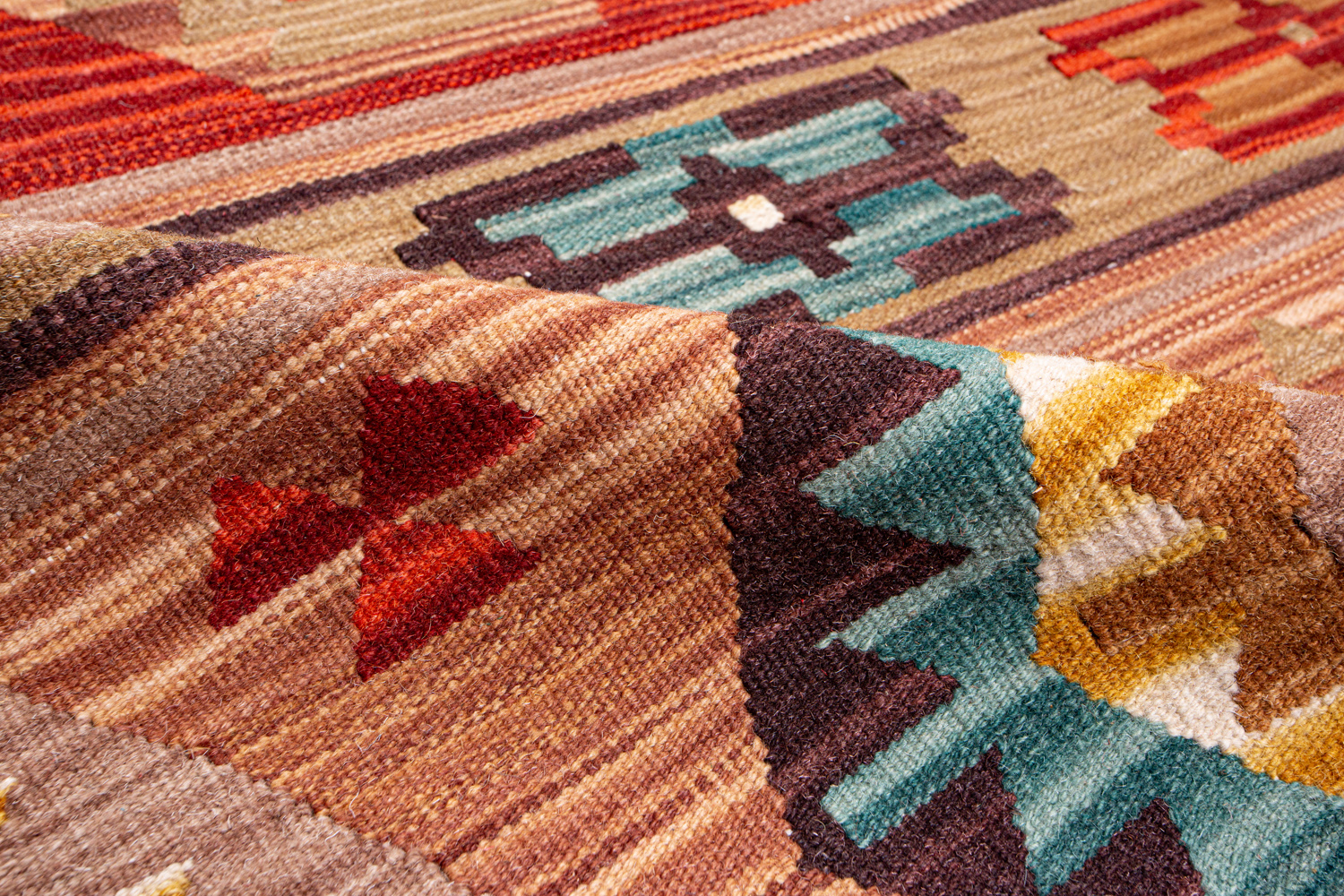 Узор ковров из коллекции Килим создаётся взаимодействием нитей утока и нитей основы, благодаря чему получается геометрический узор.