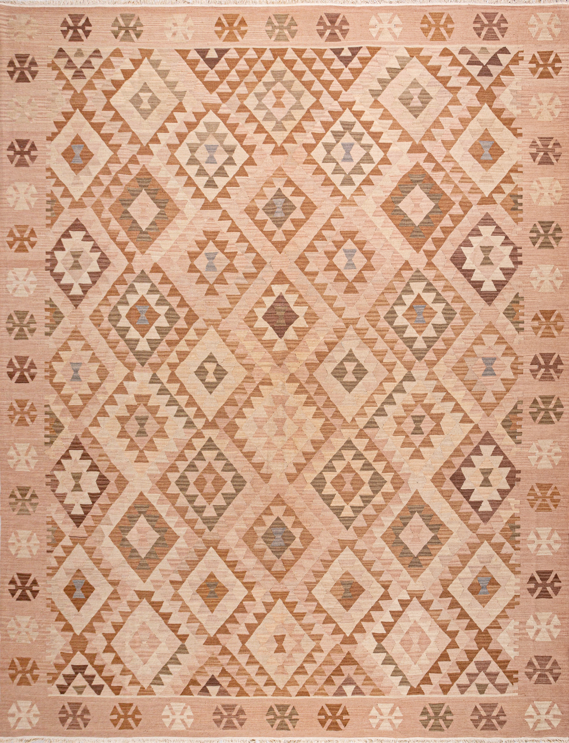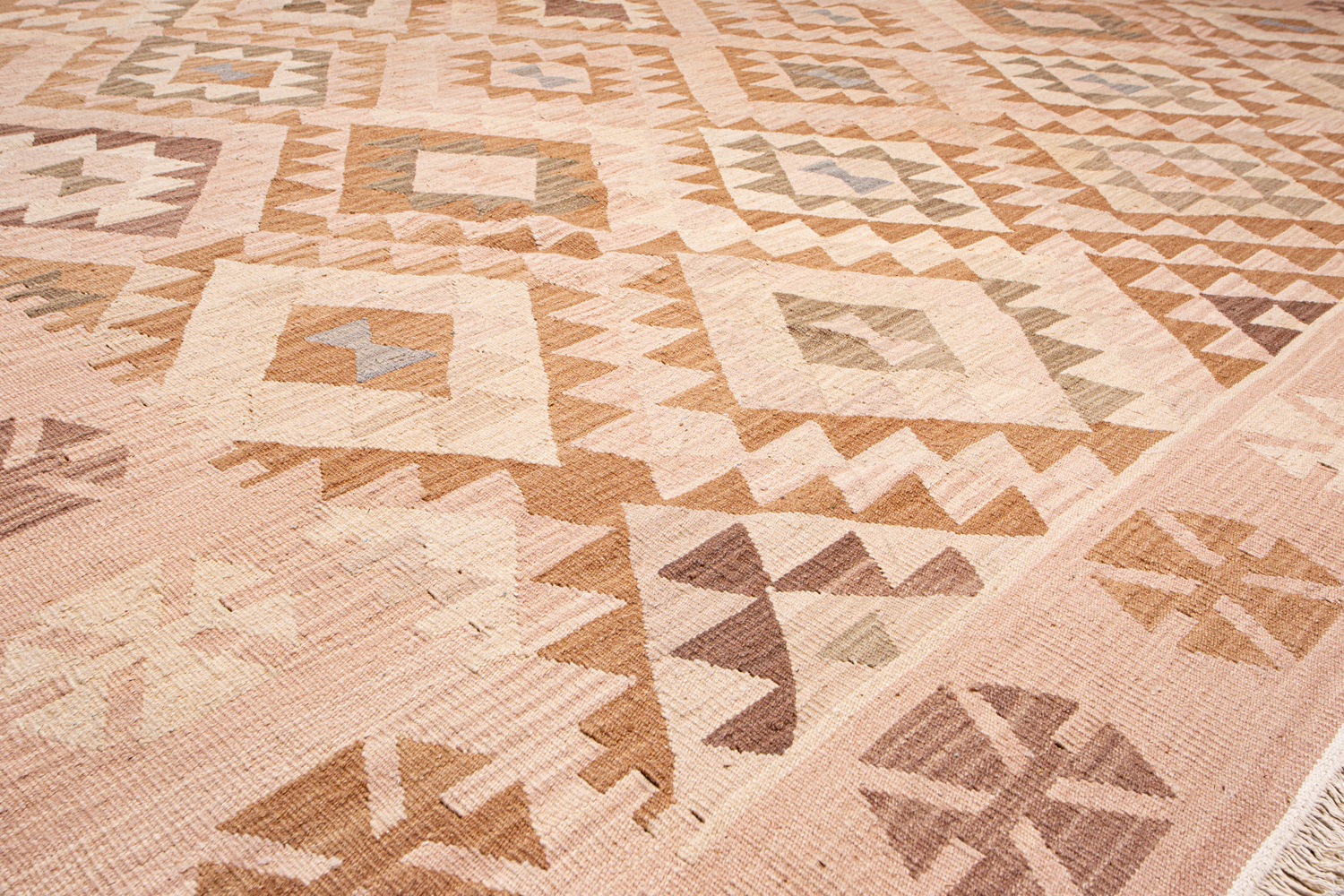 Узор ковров из коллекции Килим создаётся взаимодействием нитей утока и нитей основы, благодаря чему получается геометрический узор.
