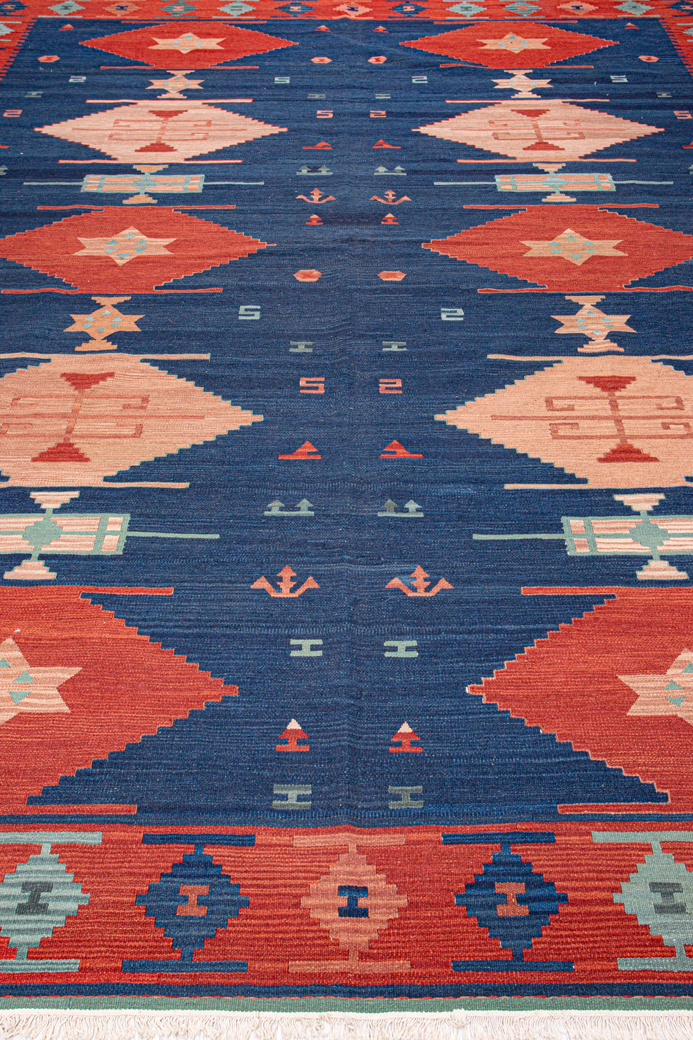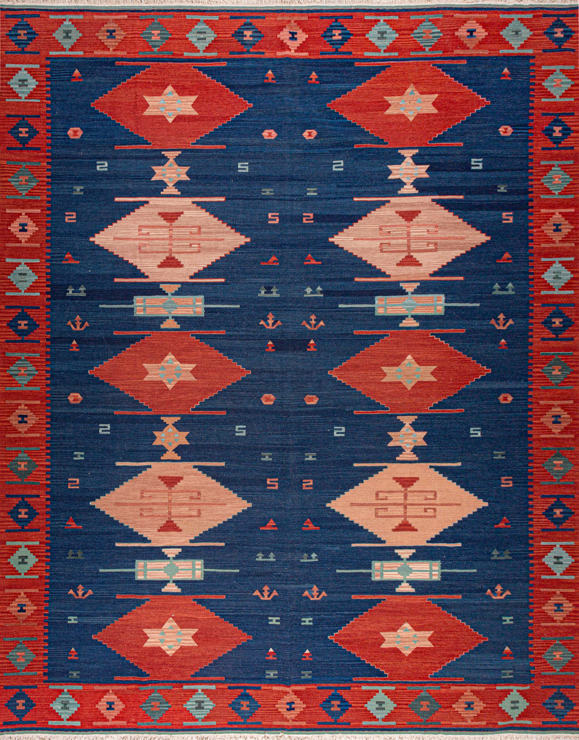 Килим — безворсовый двусторонний ковер, в его составе — высококачественная шерсть, а в дизайне — скандинавские мотивы.