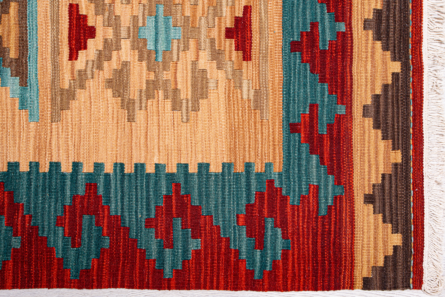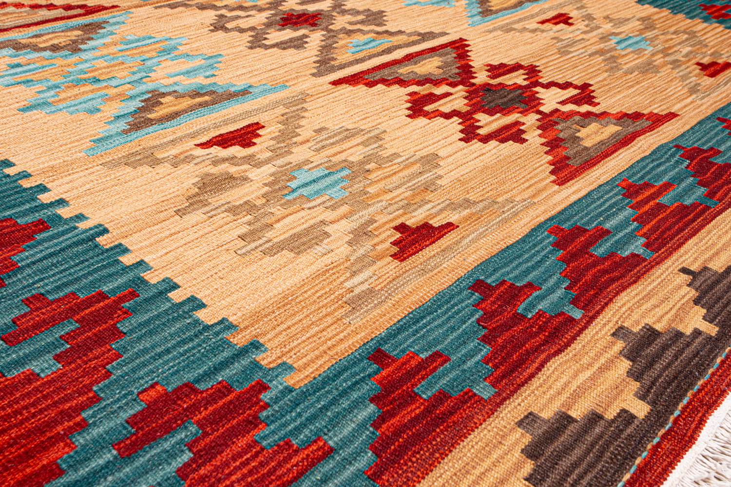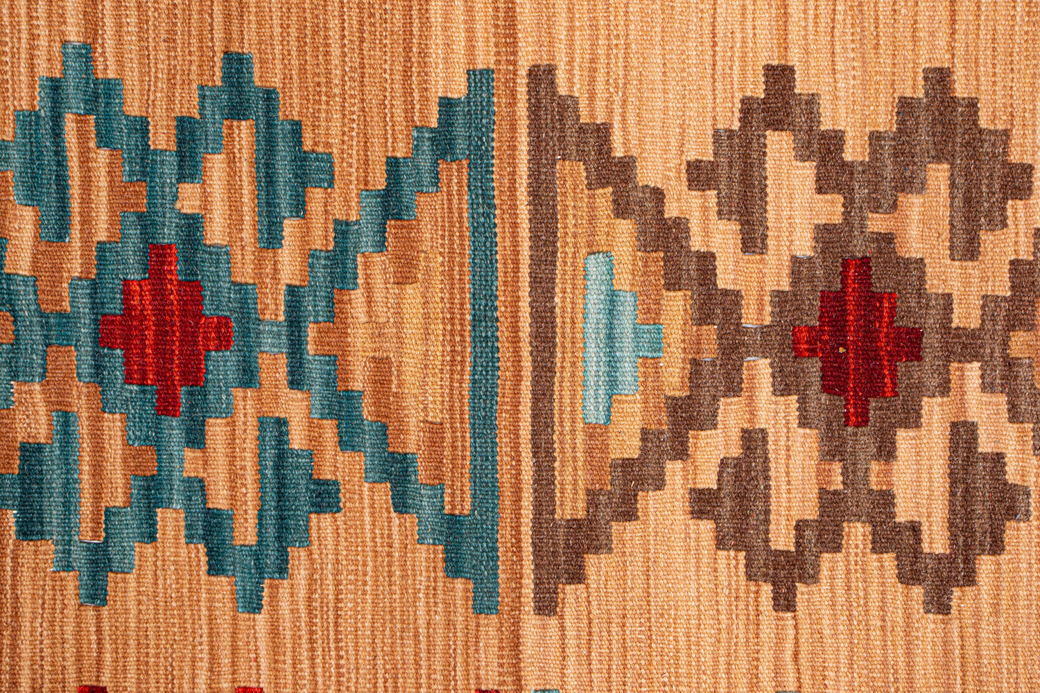 Узор ковров из коллекции Килим создаётся взаимодействием нитей утока и нитей основы, благодаря чему получается геометрический узор.