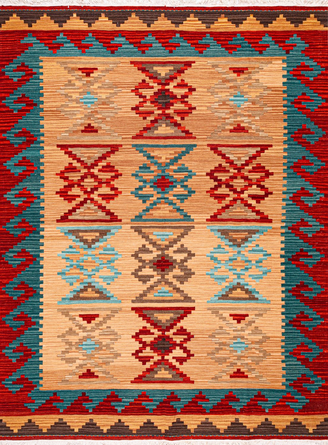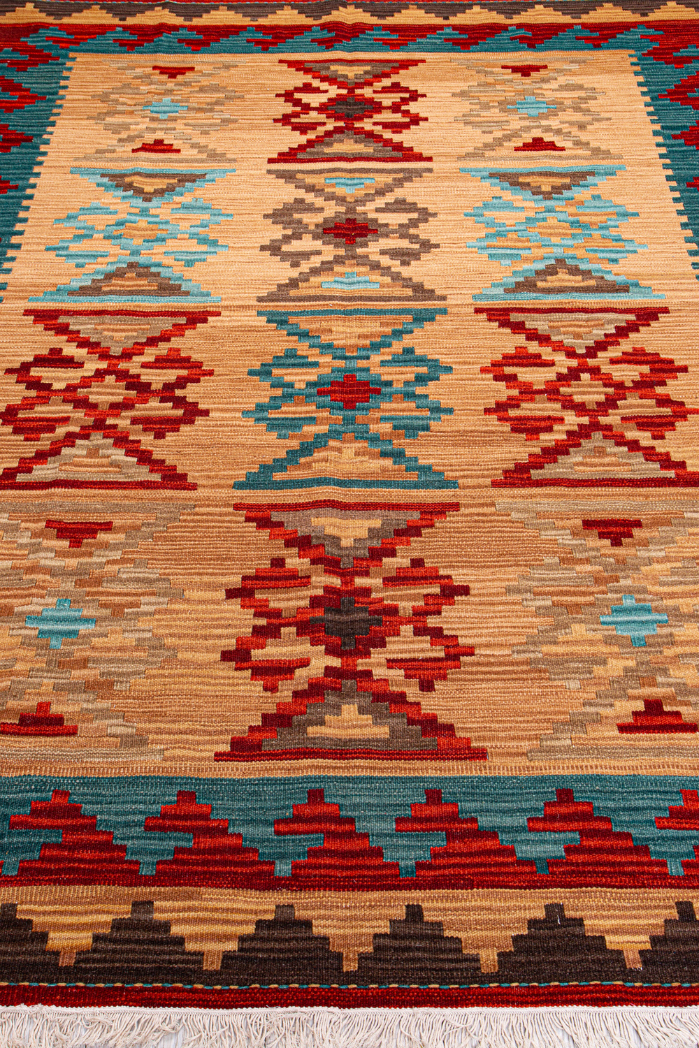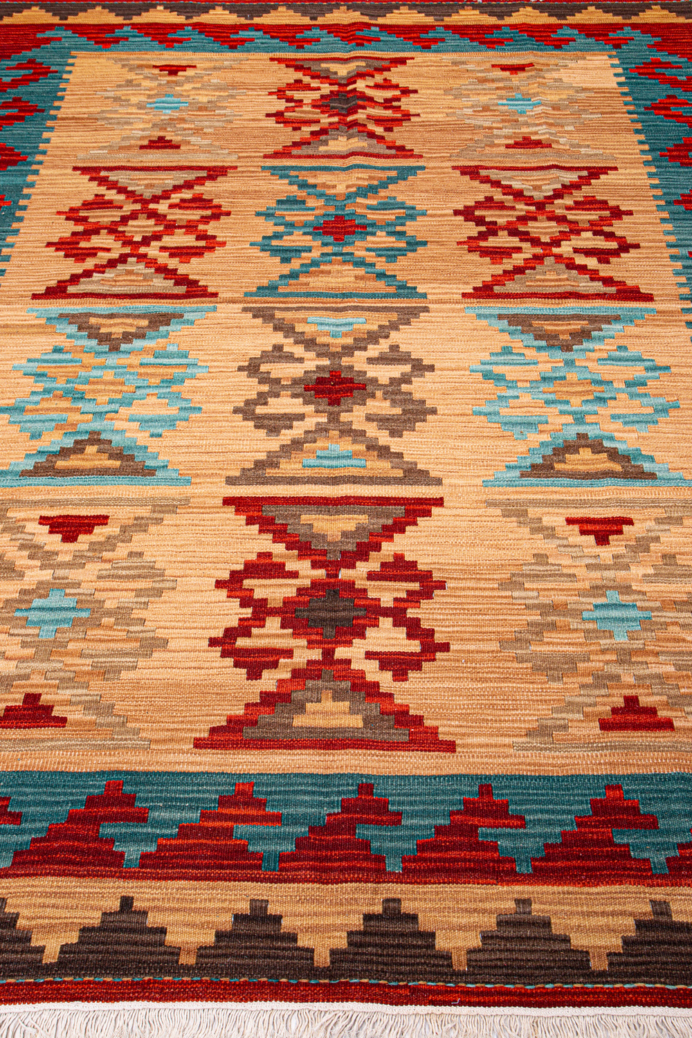 Узор ковров из коллекции Килим создаётся взаимодействием нитей утока и нитей основы, благодаря чему получается геометрический узор.
