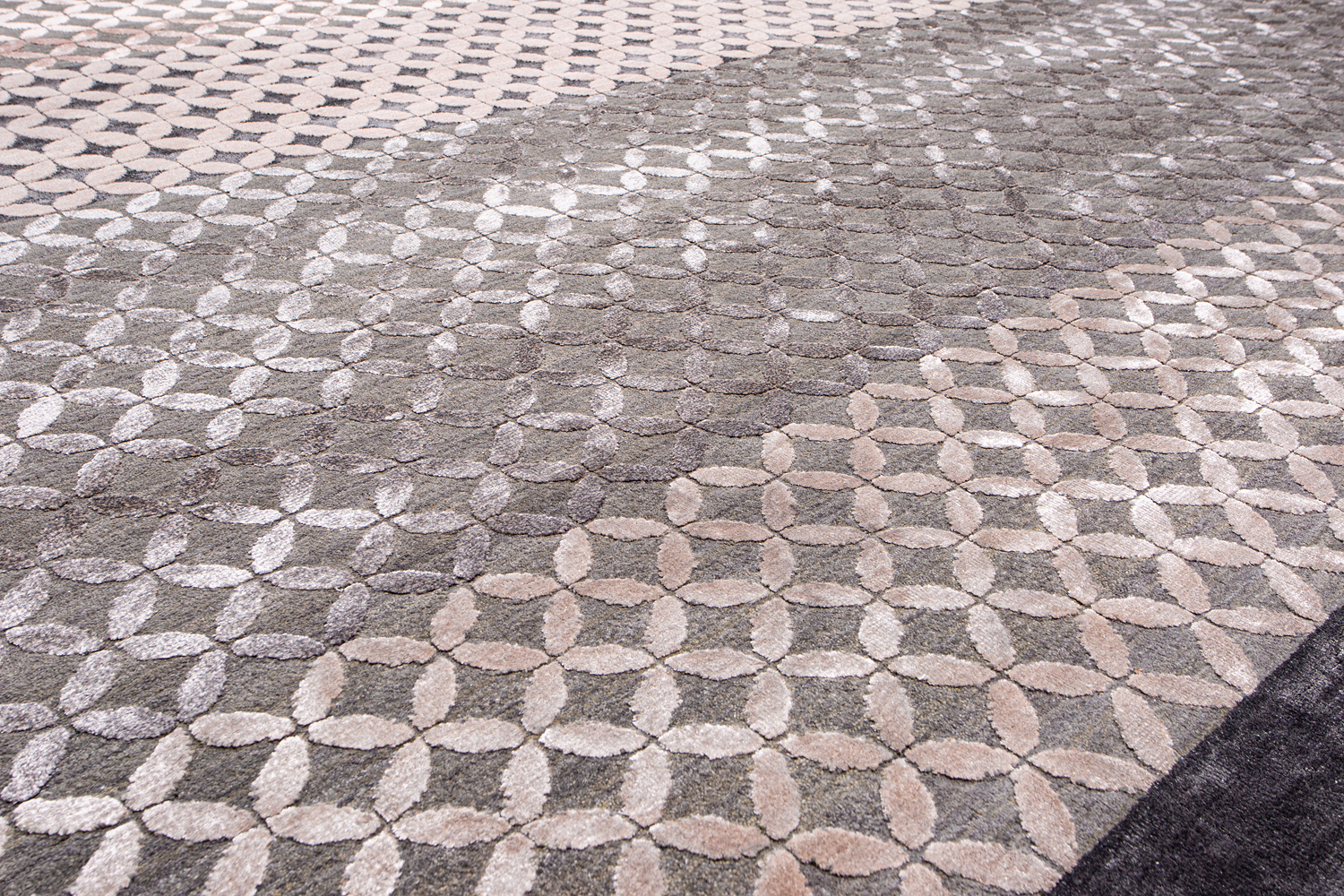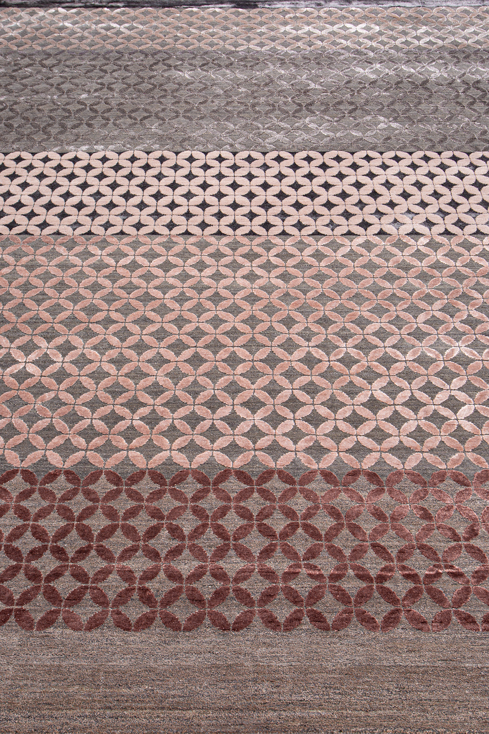 Крупные рисунки в виде линий и фигур на фактурной поверхности ковра превращаются в выразительные композиции. Они акцентируют на себе внимание и добавляют динамики в современный интерьер. Комбинации разных фигур и повторяющийся орнамент задают ритмическую основу пространству, привносят в него оригинальные оптические иллюзии.