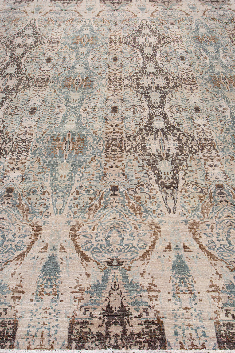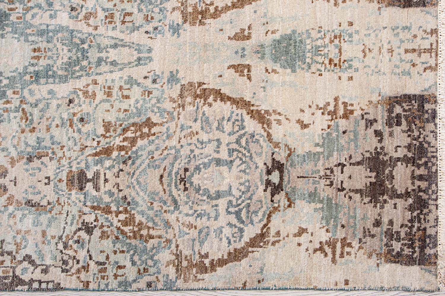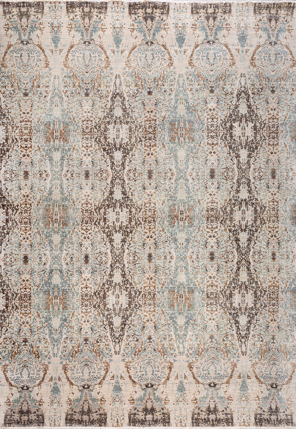Дизайн ковров напоминает современные полотна художников-абстракционистов и производит столь же яркое и незабываемое впечатление в интерьере. Живописный эффект и необычная фактура зависят от выбора материала: натуральной шерсти, шёлка и от их сочетаний друг с другом. Ковры ткутся вручную в лучших мастерских Индии и Пакистана.