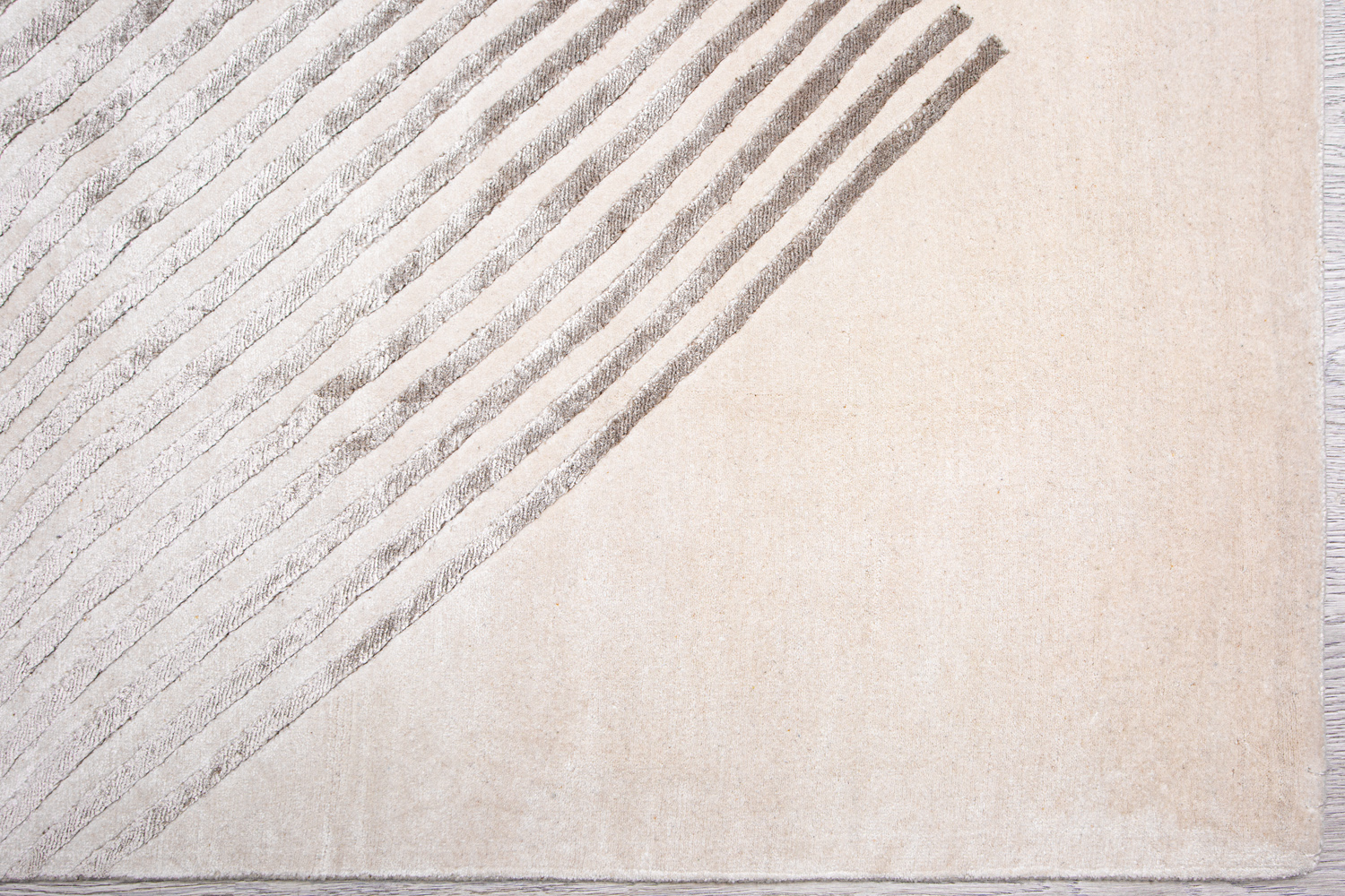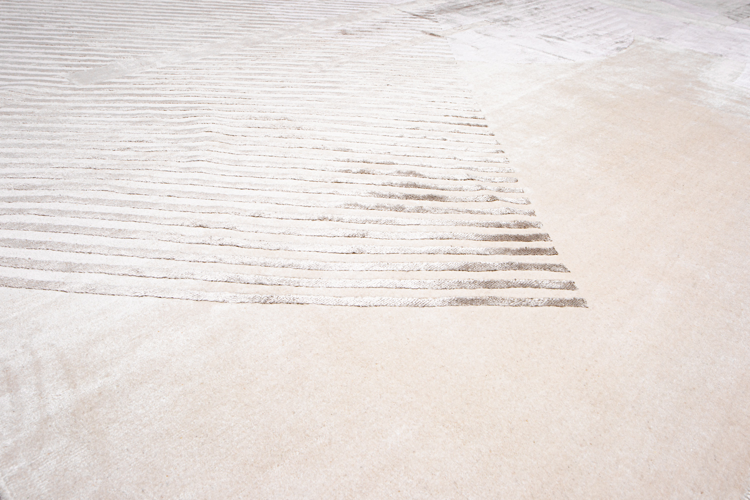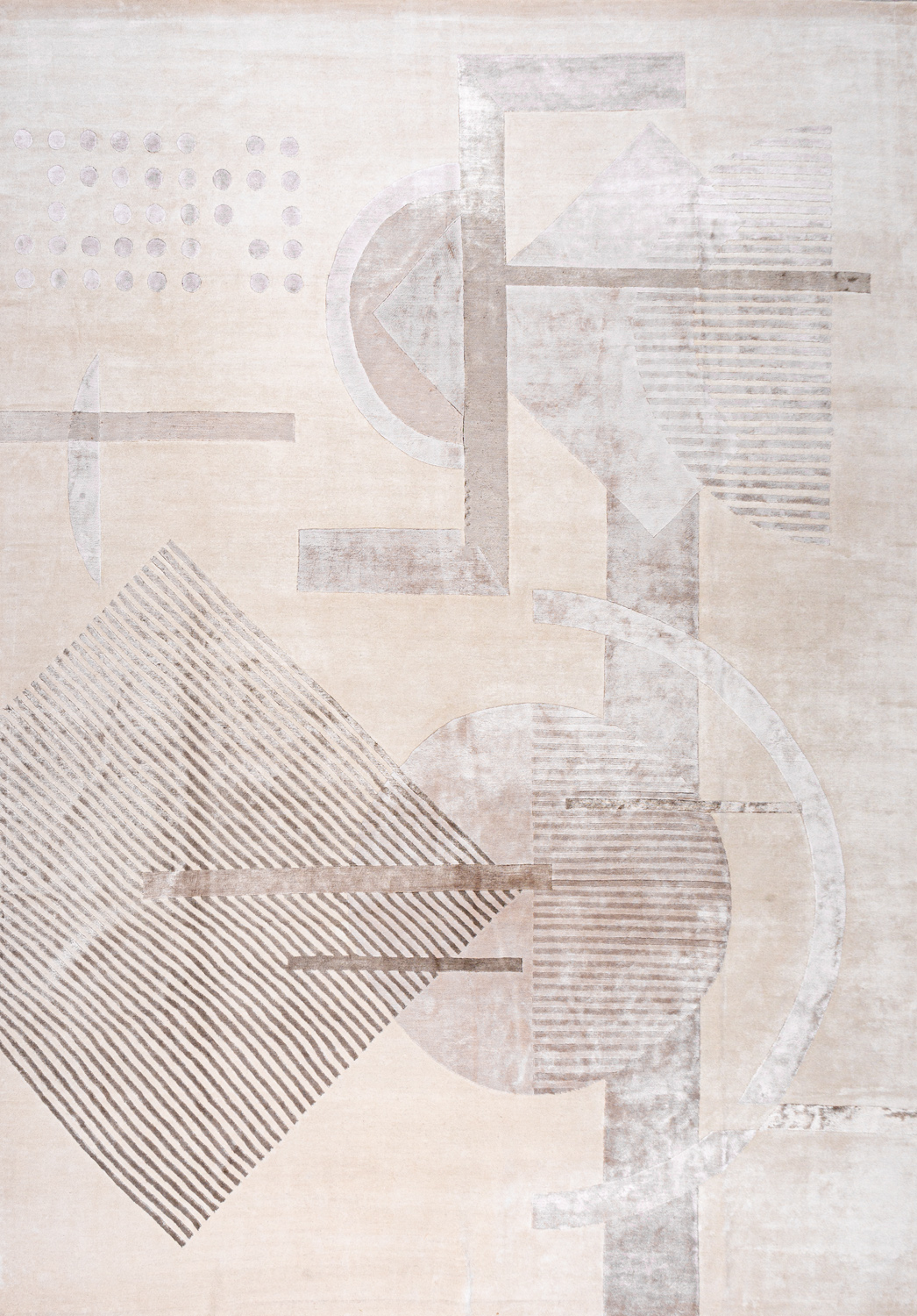 Крупные рисунки в виде линий и фигур на фактурной поверхности ковра превращаются в выразительные композиции. Они акцентируют на себе внимание и добавляют динамики в современный интерьер. Комбинации разных фигур и повторяющийся орнамент задают ритмическую основу пространству, привносят в него оригинальные оптические иллюзии.