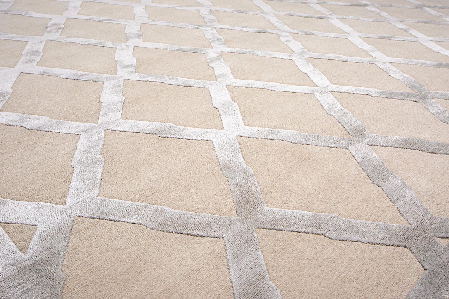Крупные рисунки в виде линий и фигур на фактурной поверхности ковра превращаются в выразительные композиции. Они акцентируют на себе внимание и добавляют динамики в современный интерьер. Комбинации разных фигур и повторяющийся орнамент задают ритмическую основу пространству, привносят в него оригинальные оптические иллюзии.