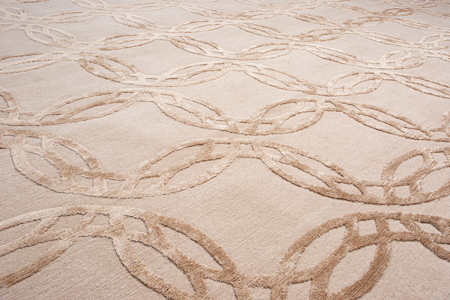 Крупные рисунки в виде линий и фигур на фактурной поверхности ковра превращаются в выразительные композиции. Они акцентируют на себе внимание и добавляют динамики в современный интерьер. Комбинации разных фигур и повторяющийся орнамент задают ритмическую основу пространству, привносят в него оригинальные оптические иллюзии.
