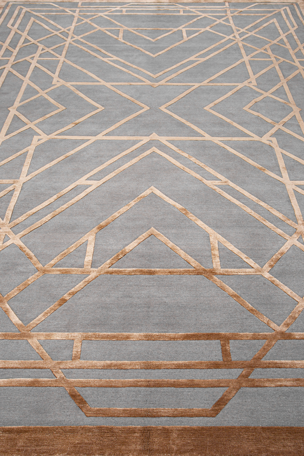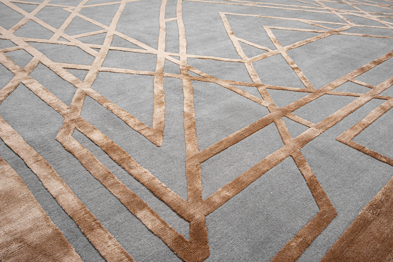 Крупные рисунки в виде линий и фигур на фактурной поверхности ковра превращаются в выразительные композиции. Они акцентируют на себе внимание и добавляют динамики в современный интерьер. Комбинации разных фигур и повторяющийся орнамент задают ритмическую основу пространству, привносят в него оригинальные оптические иллюзии.
