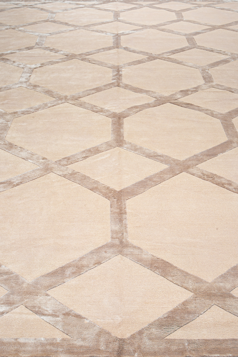 В составе ковров китайский и индийский шёлк, тибетская и новозеландская шерсть. На то, чтобы соткать такой ковер, у индийских и непальских мастеров уходит от полугода до двух лет. Плотность ковров, в зависимости от размера, составляет от 150 000 до 300 000 узлов на квадратный метр.