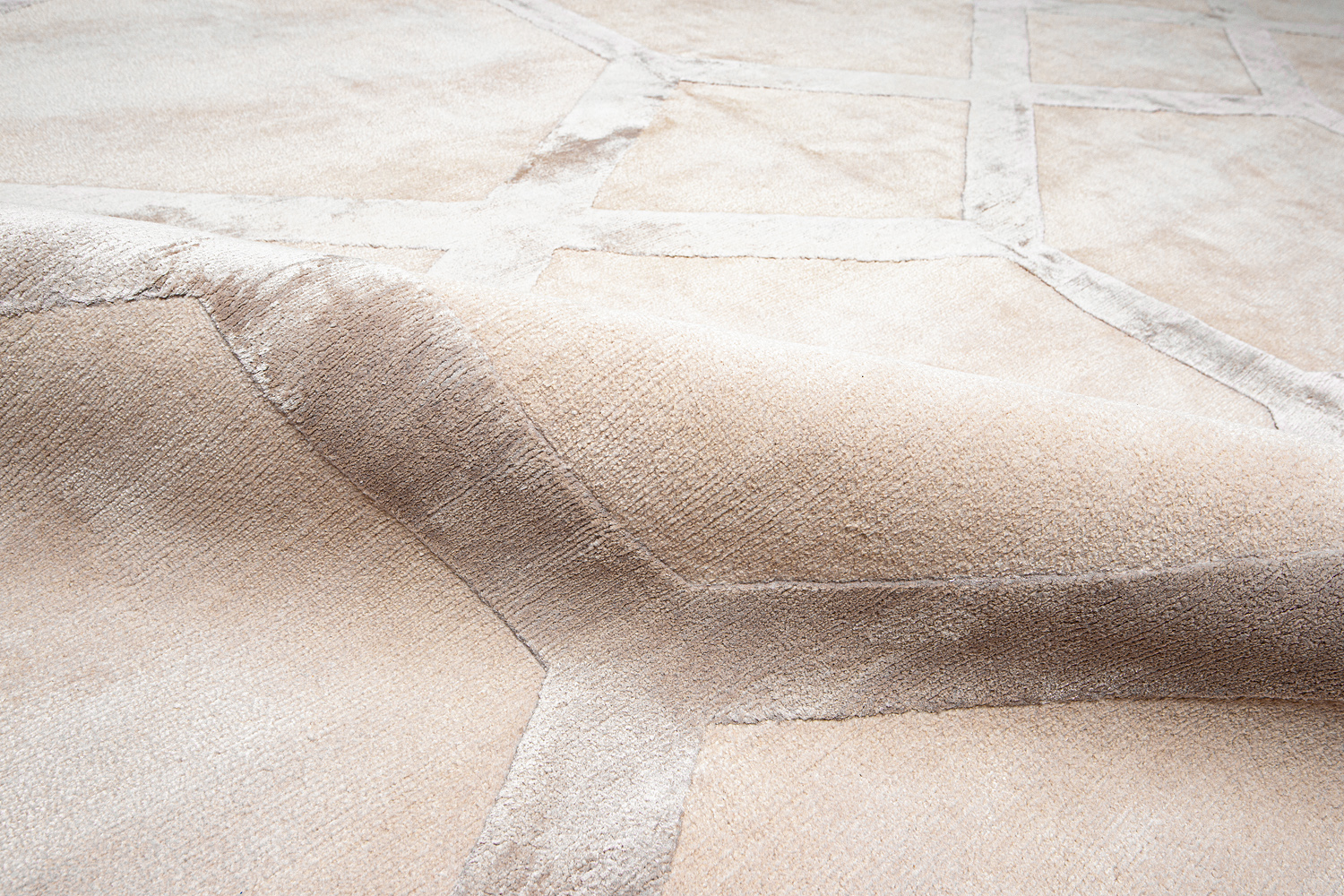Крупные рисунки в виде линий и фигур на фактурной поверхности ковра превращаются в выразительные композиции. Они акцентируют на себе внимание и добавляют динамики в современный интерьер. Комбинации разных фигур и повторяющийся орнамент задают ритмическую основу пространству, привносят в него оригинальные оптические иллюзии.