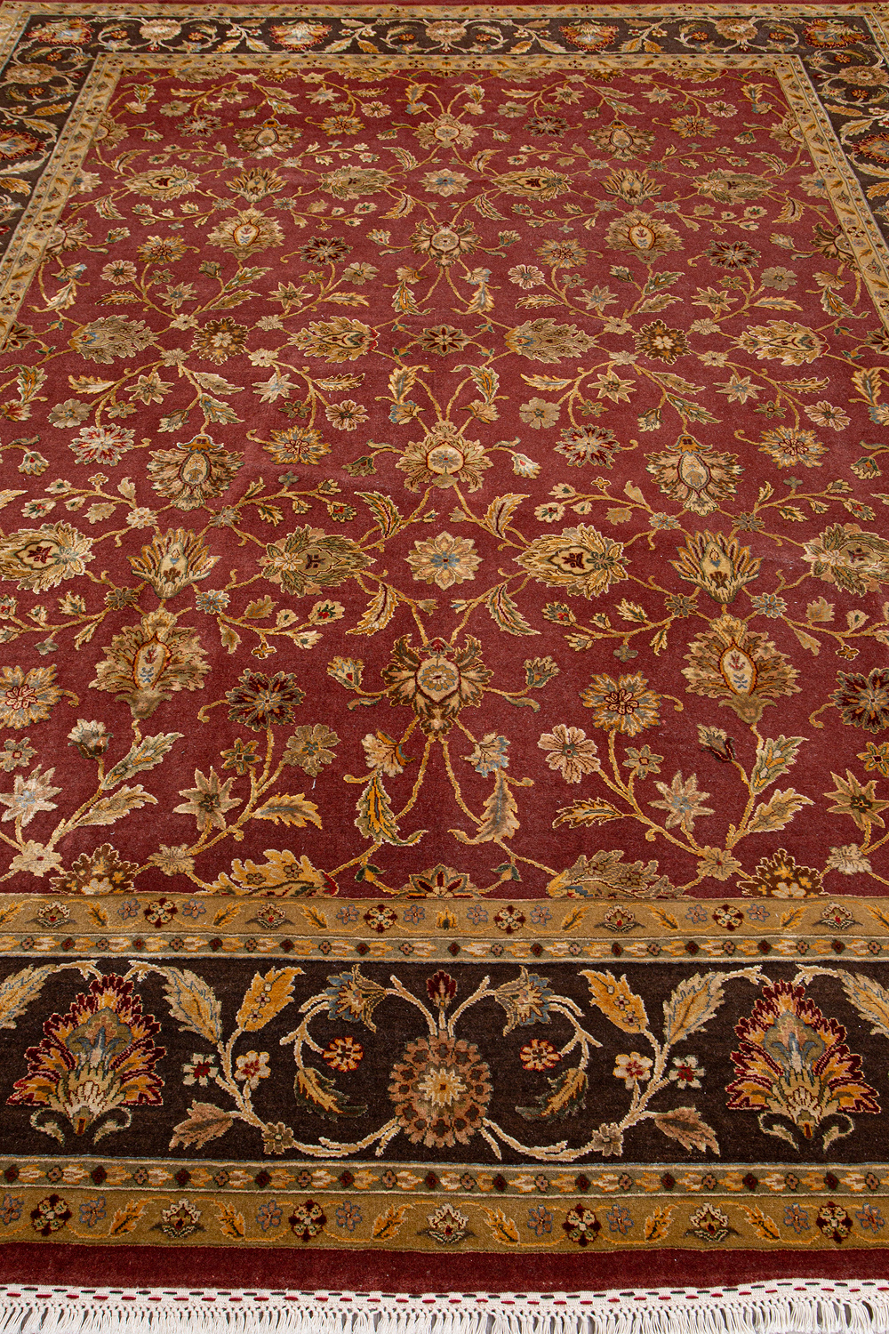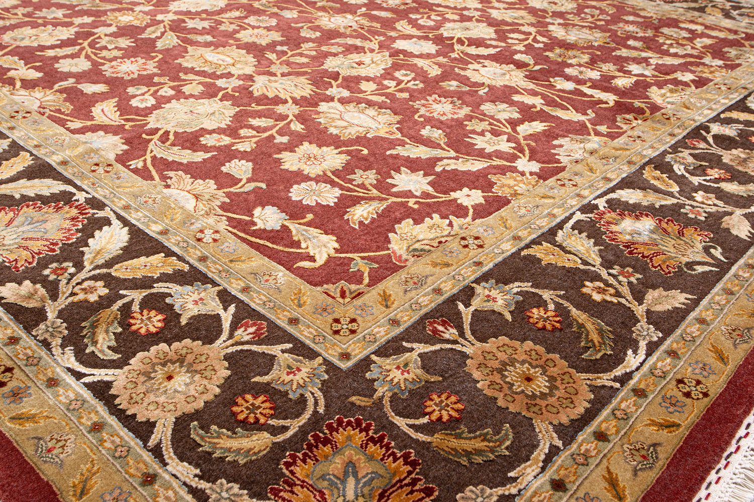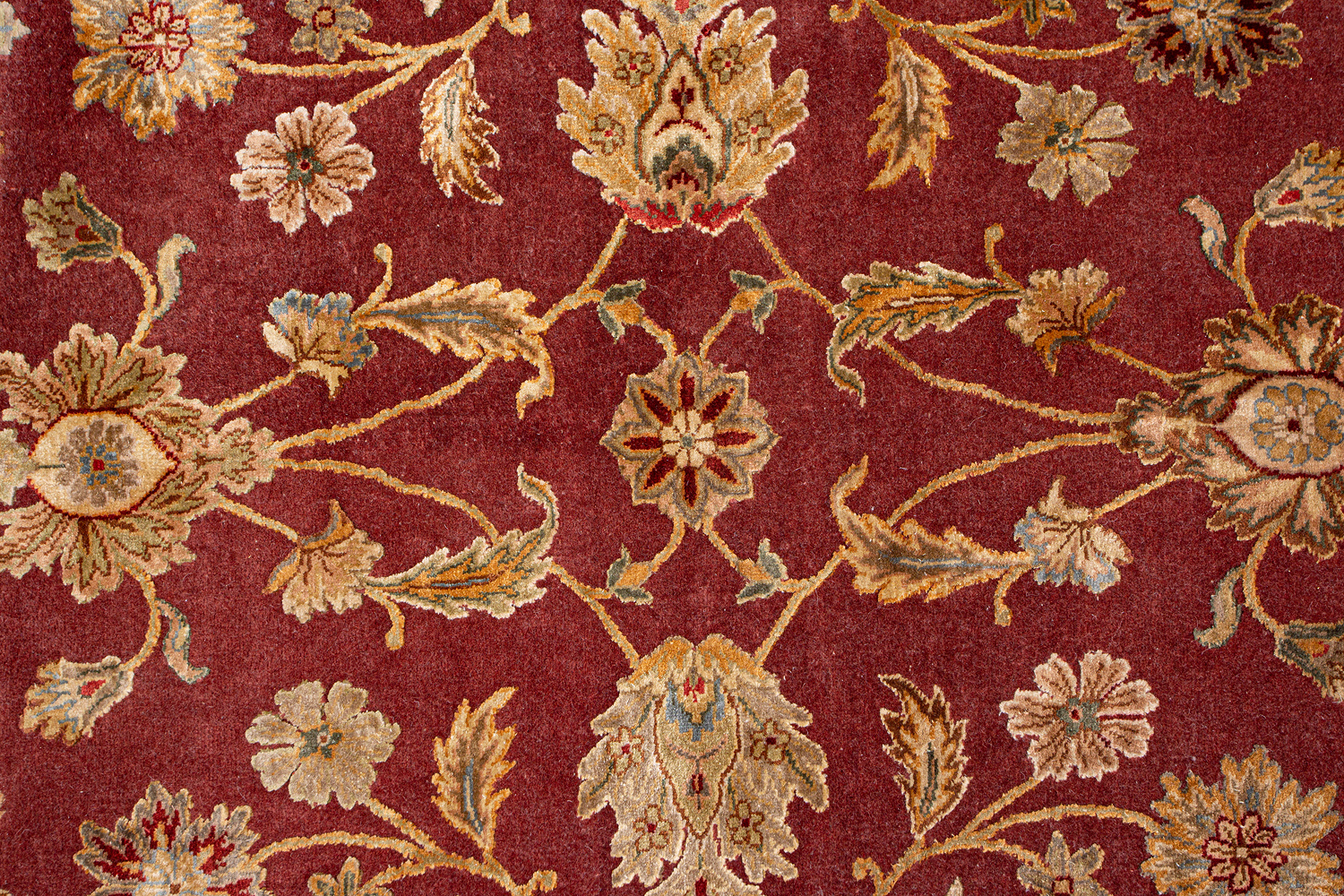 Более пяти веков назад в городе Агра зародилась знаменитая индийская школа ковроткачества, прославившаяся не меньше, чем расположенный здесь же Тадж-Махал. Мощное персидское влияние, помноженное на местный колорит, привело к появлению оригинальных орнаментов с богатыми растительными узорами — причудливым цветам, ветвям и листьям, разбросанным по всему полю ковра.