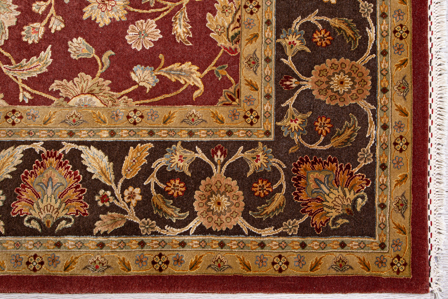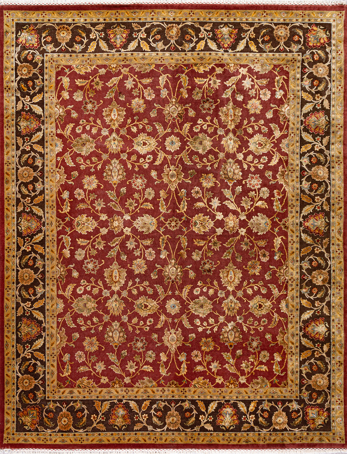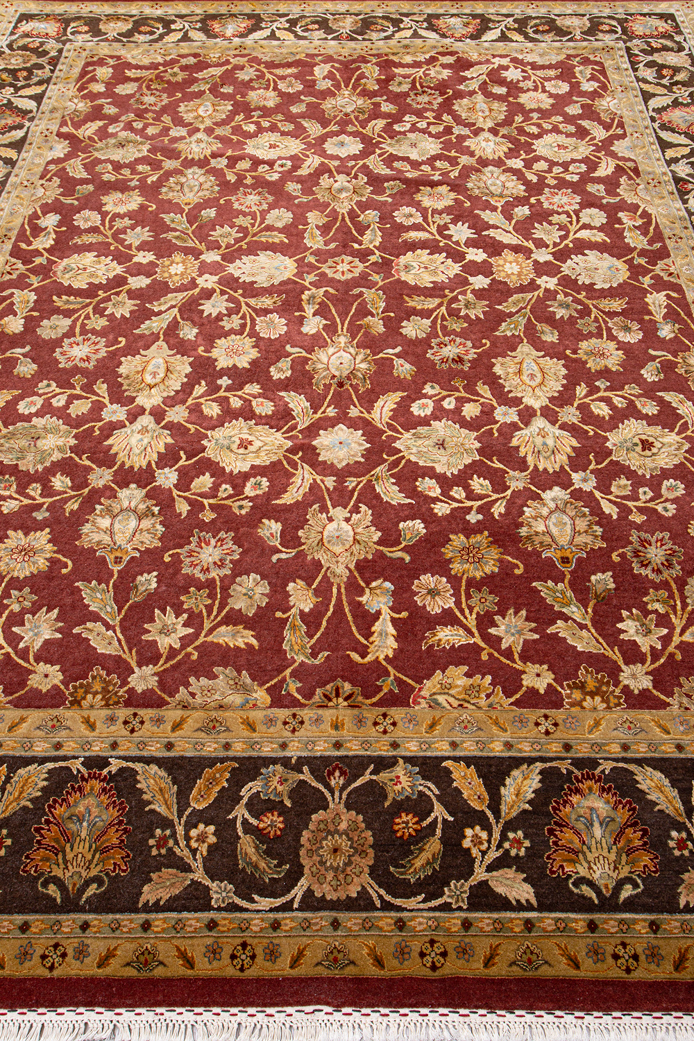 Более пяти веков назад в городе Агра зародилась знаменитая индийская школа ковроткачества, прославившаяся не меньше, чем расположенный здесь же Тадж-Махал. Мощное персидское влияние, помноженное на местный колорит, привело к появлению оригинальных орнаментов с богатыми растительными узорами — причудливым цветам, ветвям и листьям, разбросанным по всему полю ковра.