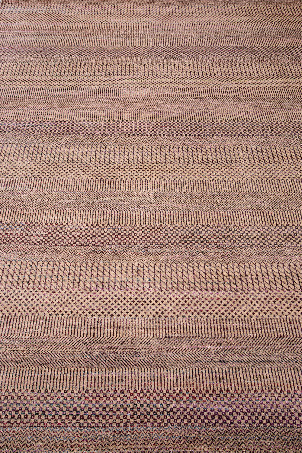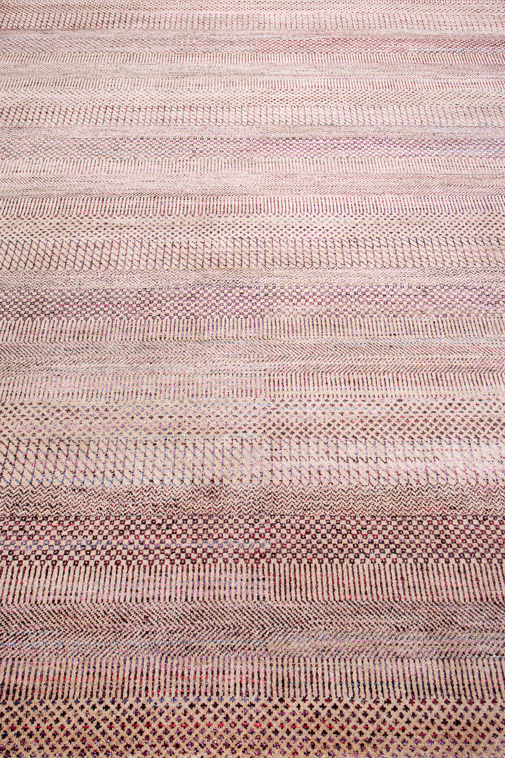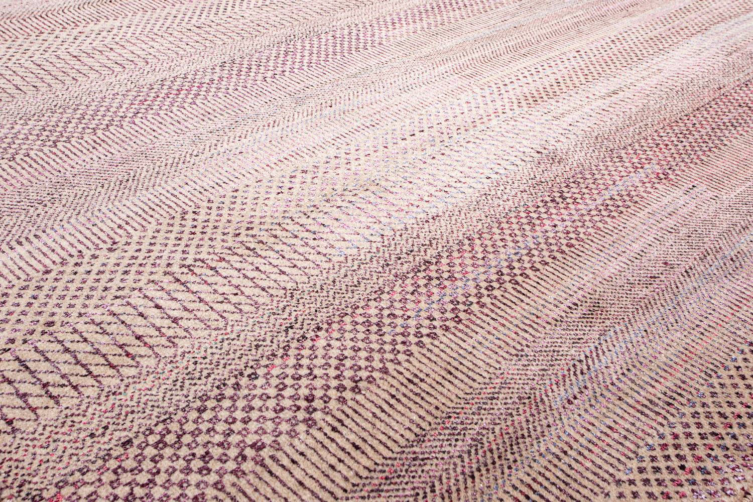 Дизайн ковров напоминает современные полотна художников-абстракционистов и производит столь же яркое и незабываемое впечатление в интерьере. Живописный эффект и необычная фактура зависят от выбора материала: натуральной шерсти, шёлка и от их сочетаний друг с другом. Ковры ткутся вручную в лучших мастерских Индии и Пакистана.