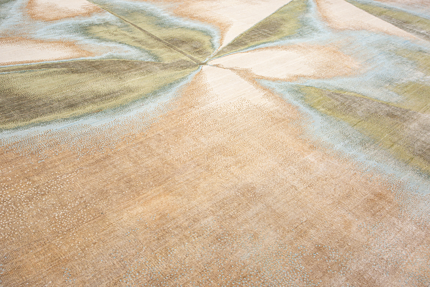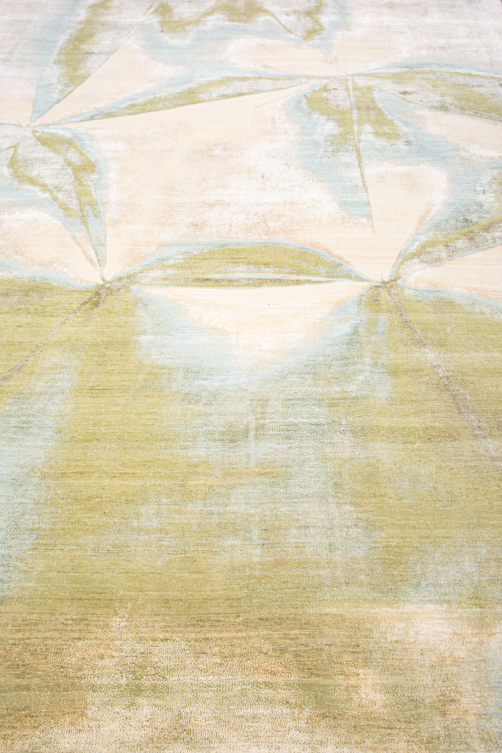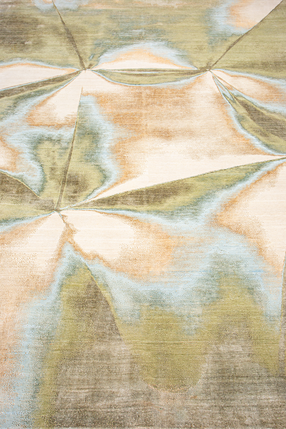 Дизайн ковров напоминает современные полотна художников-абстракционистов и производит столь же яркое и незабываемое впечатление в интерьере. Живописный эффект и необычная фактура зависят от выбора материала: натуральной шерсти, шёлка и от их сочетаний друг с другом. Ковры ткутся вручную в лучших мастерских Индии и Пакистана.