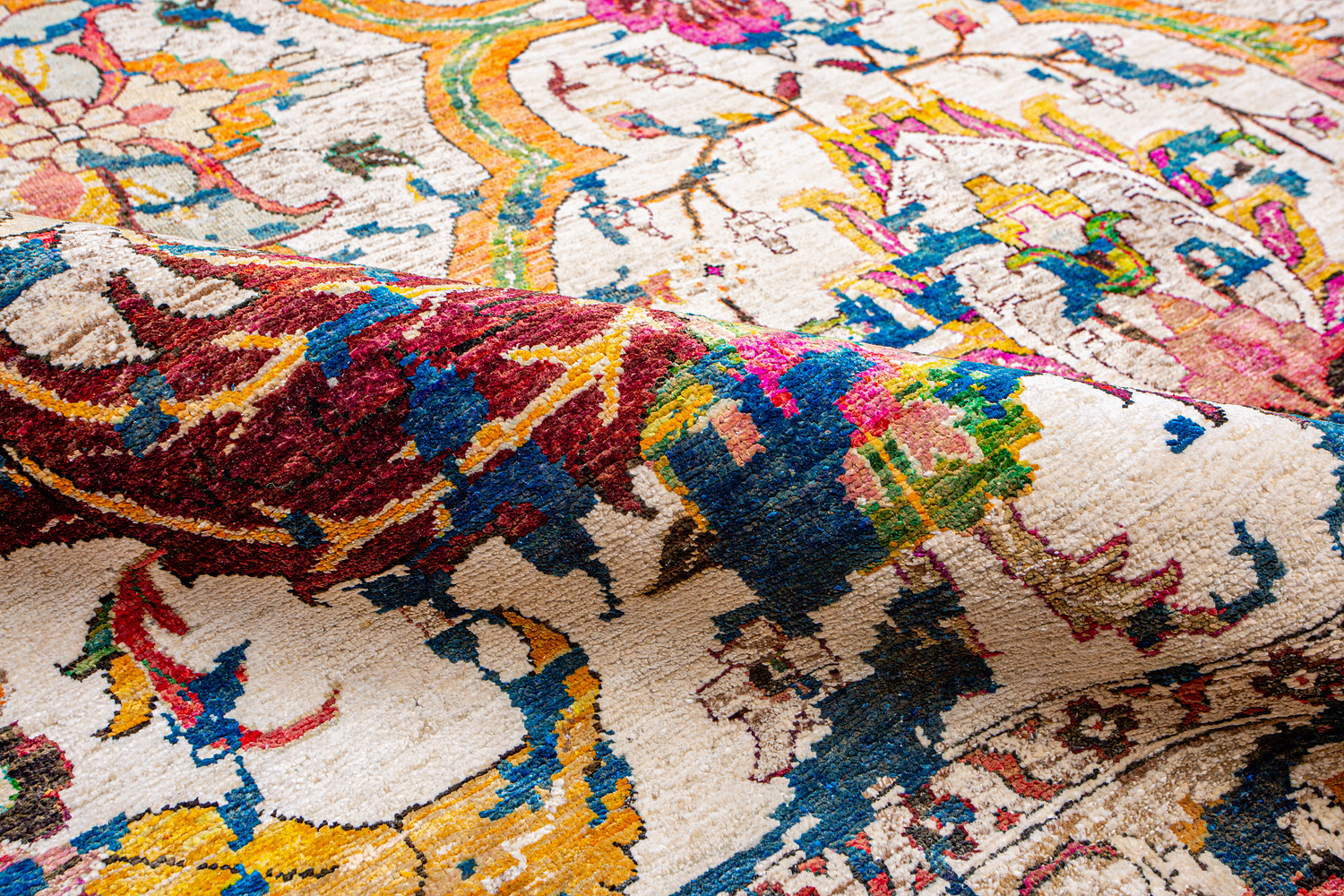 Прекрасные цветочные орнаменты на поверхности ковров словно проступают сквозь толщу веков, и неумолимое время оставляет на них свой выразительный след. Вдохновением для коллекции послужили антикварные ковры и старинные ювелирные украшения. Драгоценный блеск шёлка придаёт коврам Bliss роскошный вид и живую игру мягких световых бликов.