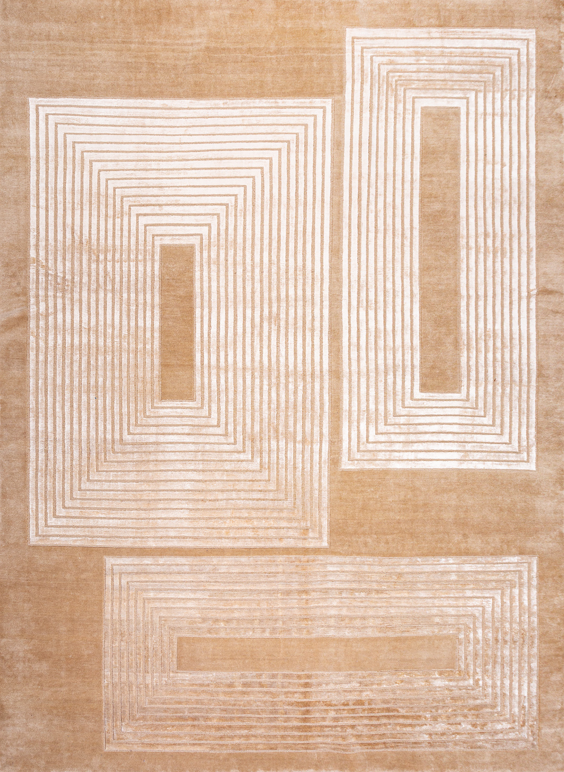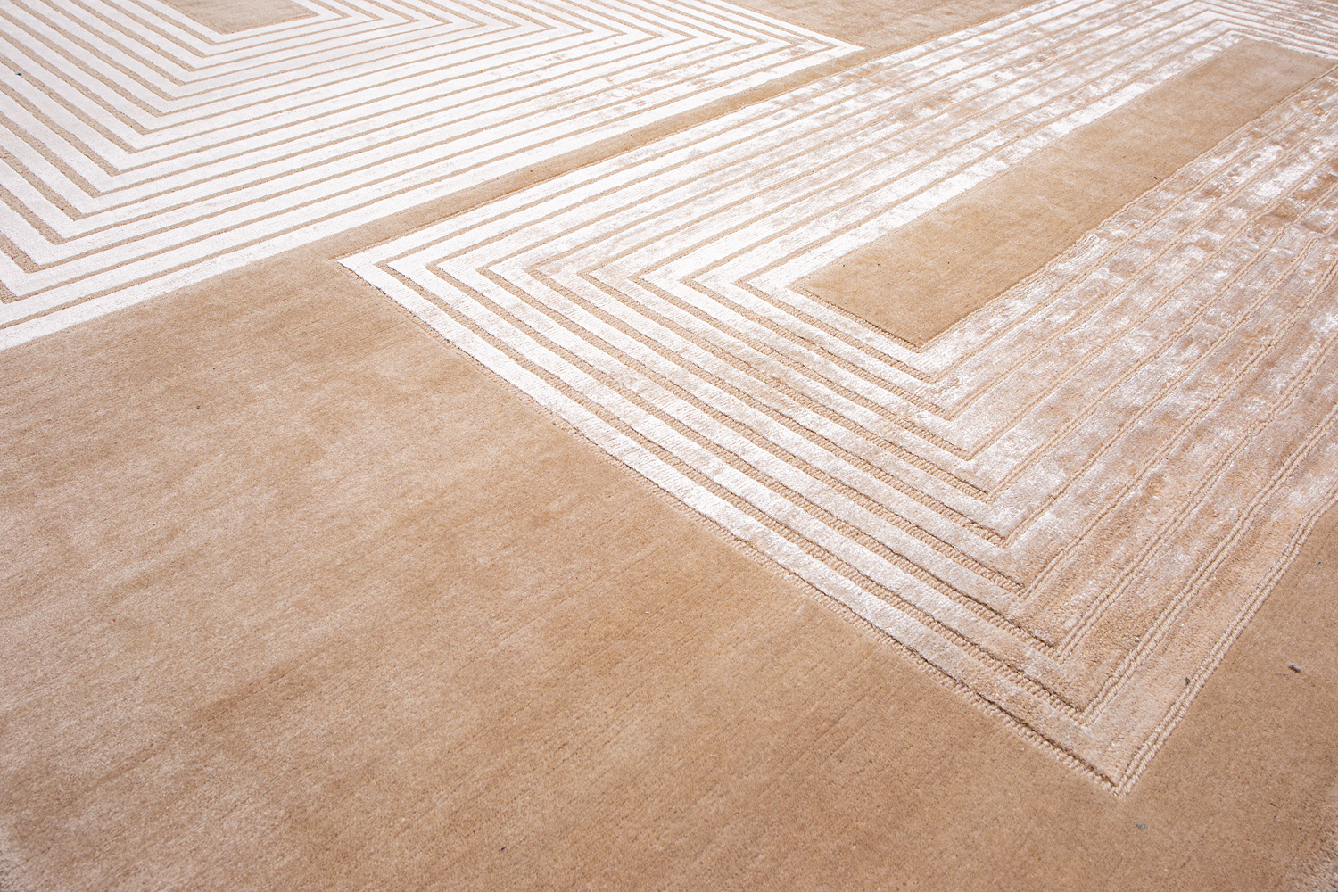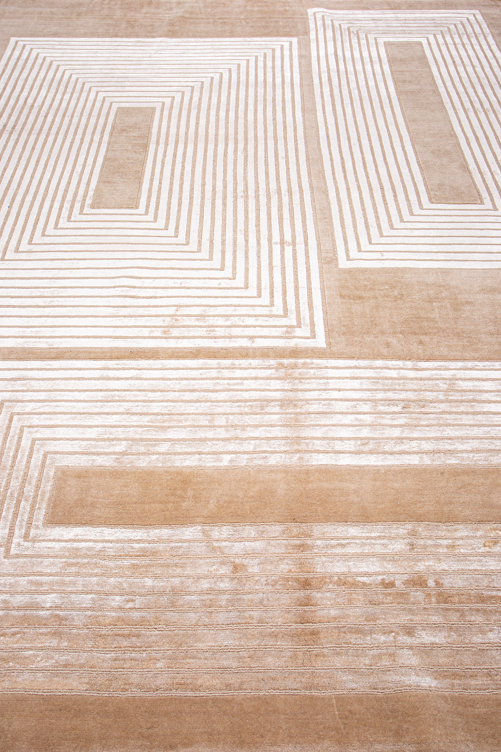 Крупные рисунки в виде линий и фигур на фактурной поверхности ковра превращаются в выразительные композиции. Они акцентируют на себе внимание и добавляют динамики в современный интерьер. Комбинации разных фигур и повторяющийся орнамент задают ритмическую основу пространству, привносят в него оригинальные оптические иллюзии.