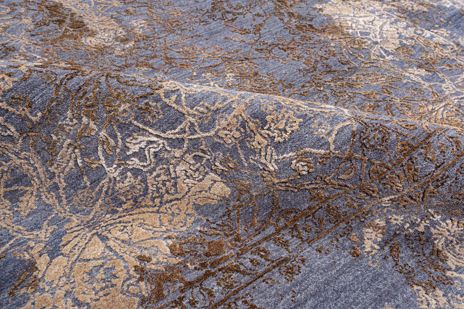 Такой эффект достигается за счет специальной техники плетения, а также обработки, которой подвергают ковры, чтобы они выглядели как антикварные — то есть дорого, элегантно и модно.