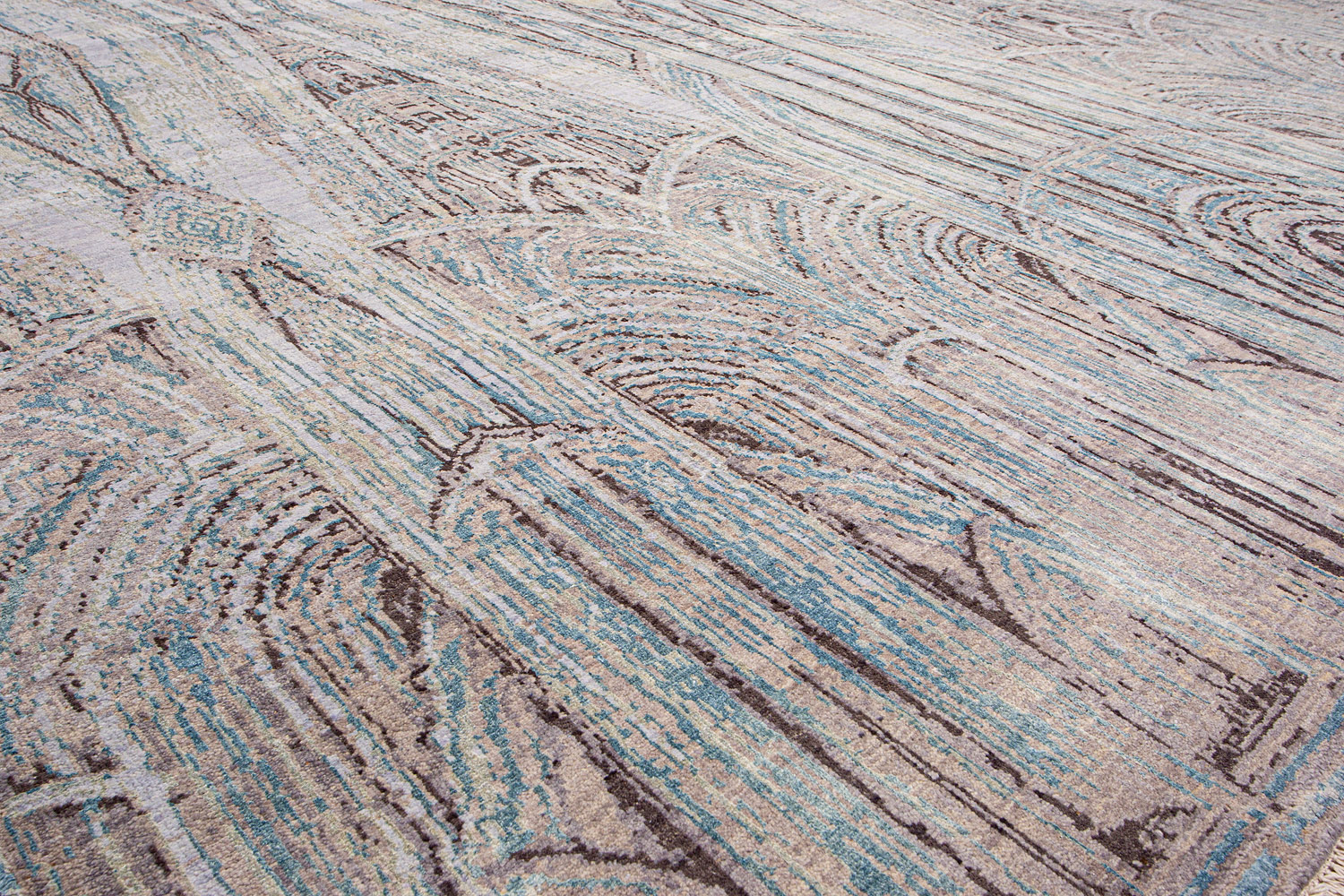Дизайн ковров напоминает современные полотна художников-абстракционистов и производит столь же яркое и незабываемое впечатление в интерьере. Живописный эффект и необычная фактура зависят от выбора материала: натуральной шерсти, шёлка и от их сочетаний друг с другом. Ковры ткутся вручную в лучших мастерских Индии и Пакистана.
