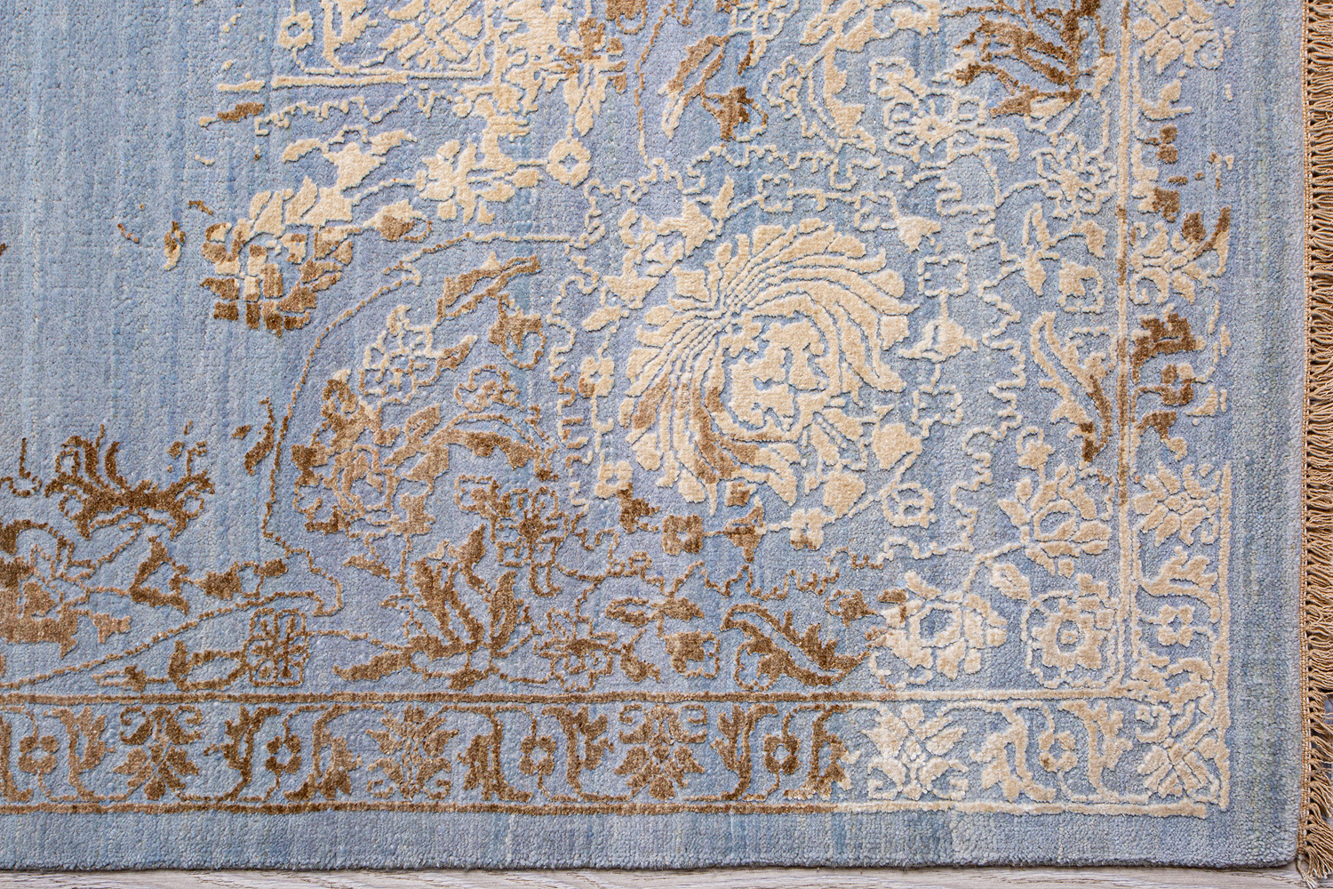 Такой эффект достигается за счет специальной техники плетения, а также обработки, которой подвергают ковры, чтобы они выглядели как антикварные — то есть дорого, элегантно и модно.