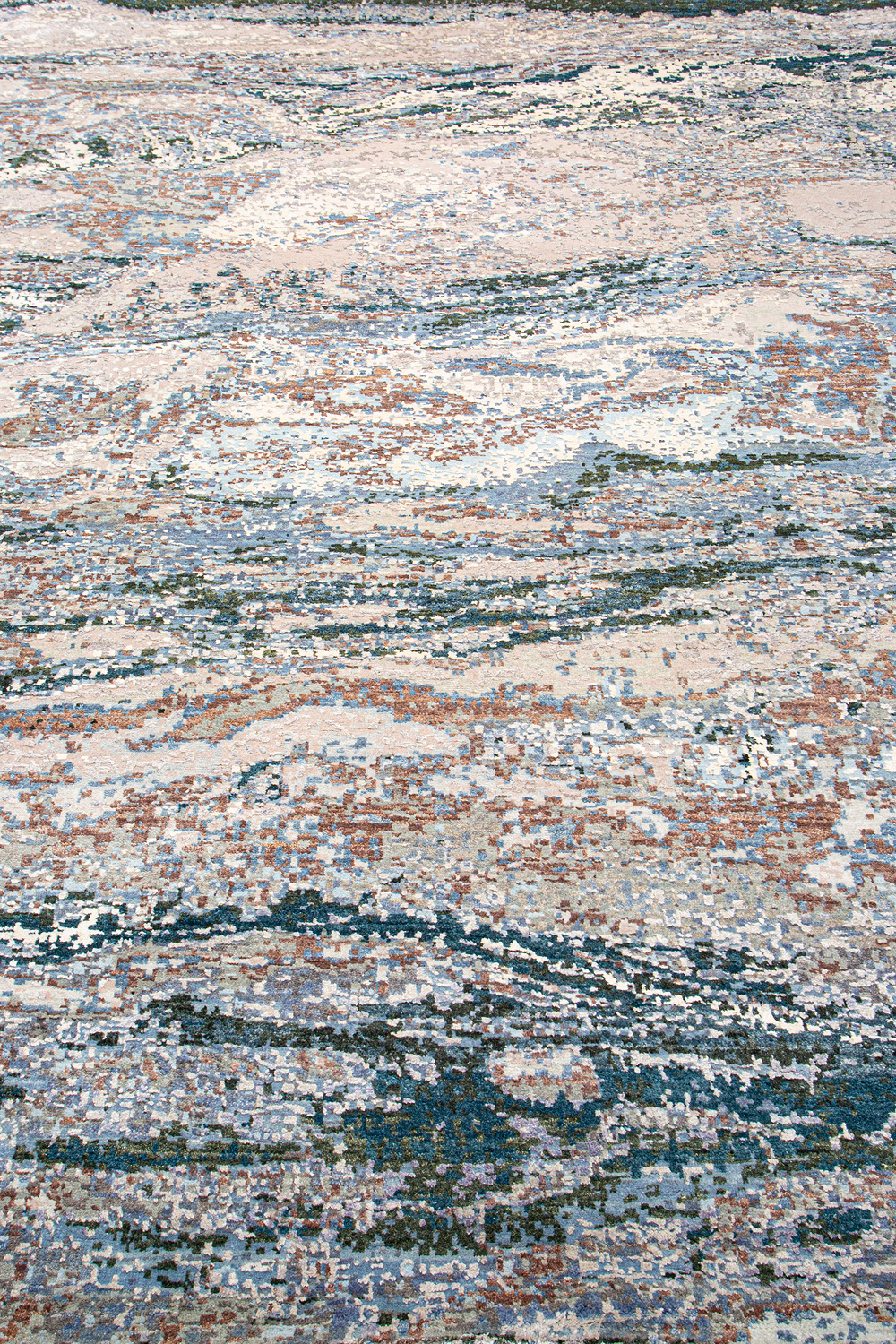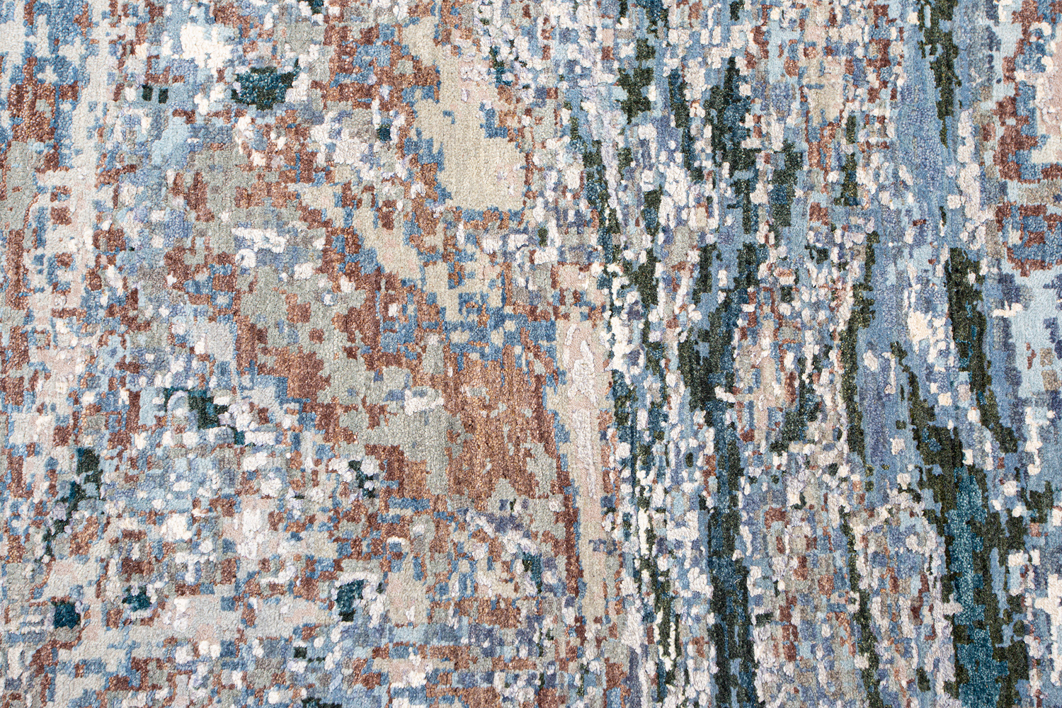 Дизайн ковров напоминает современные полотна художников-абстракционистов и производит столь же яркое и незабываемое впечатление в интерьере. Живописный эффект и необычная фактура зависят от выбора материала: натуральной шерсти, шёлка и от их сочетаний друг с другом. Ковры ткутся вручную в лучших мастерских Индии и Пакистана.