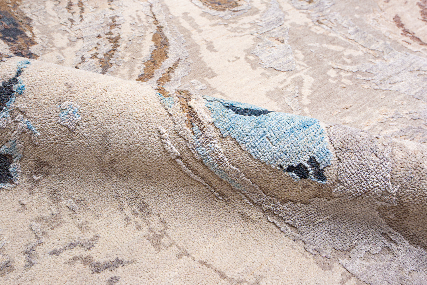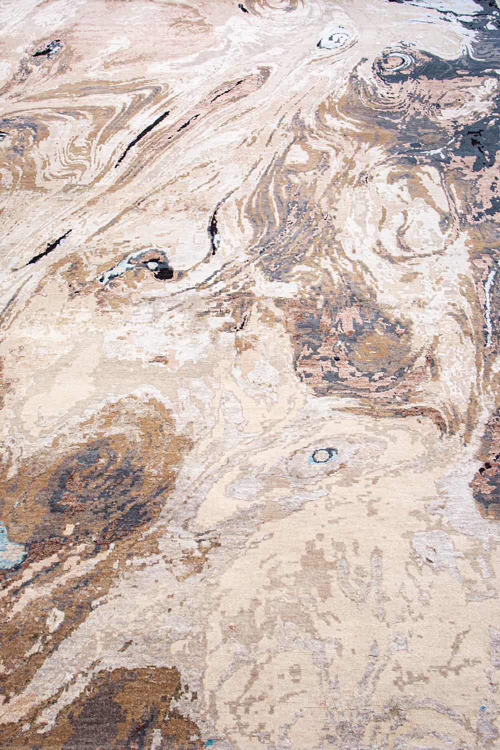 Дизайн ковров напоминает современные полотна художников-абстракционистов и производит столь же яркое и незабываемое впечатление в интерьере. Живописный эффект и необычная фактура зависят от выбора материала: натуральной шерсти, шёлка и от их сочетаний друг с другом. Ковры ткутся вручную в лучших мастерских Индии и Пакистана.