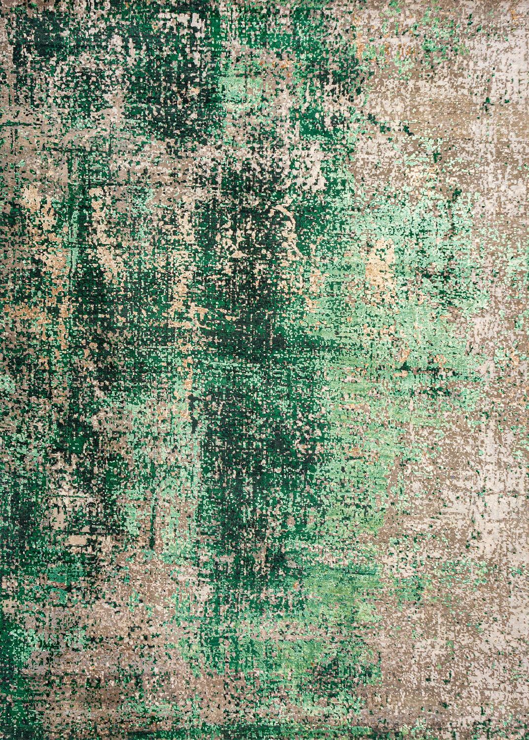 Дизайн ковров напоминает современные полотна художников-абстракционистов и производит столь же яркое и незабываемое впечатление в интерьере. Живописный эффект и необычная фактура зависят от выбора материала: натуральной шерсти, шёлка и от их сочетаний друг с другом. Ковры ткутся вручную в лучших мастерских Индии и Пакистана.