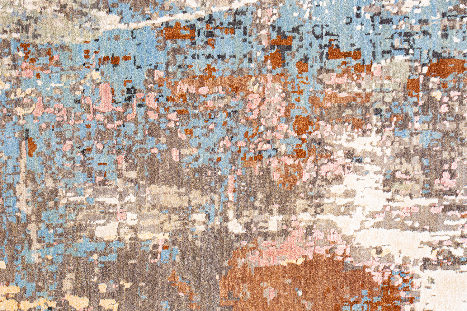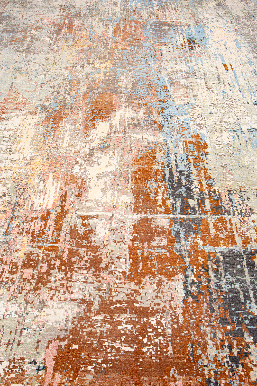Дизайн ковров напоминает современные полотна художников-абстракционистов и производит столь же яркое и незабываемое впечатление в интерьере. Живописный эффект и необычная фактура зависят от выбора материала: натуральной шерсти, шёлка и от их сочетаний друг с другом. Ковры ткутся вручную в лучших мастерских Индии и Пакистана.