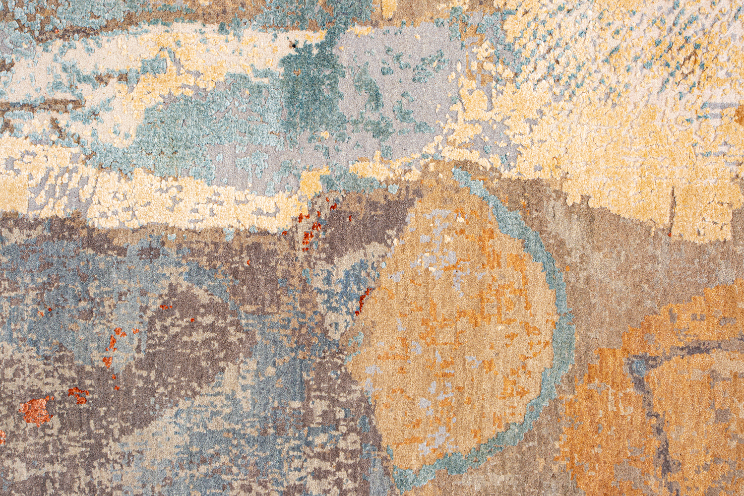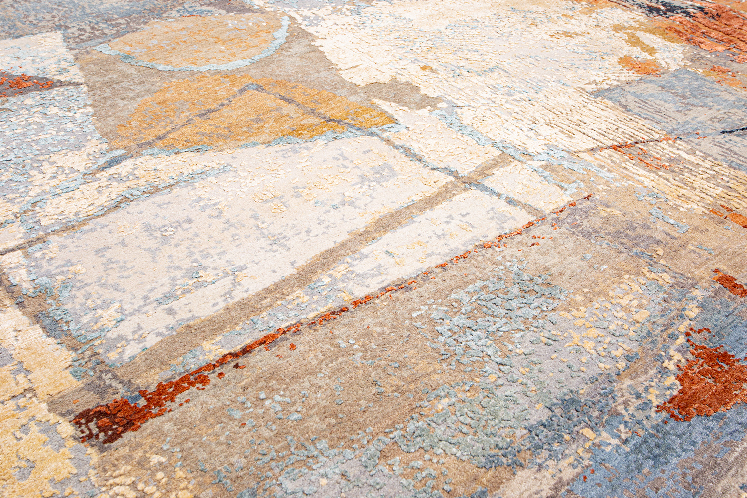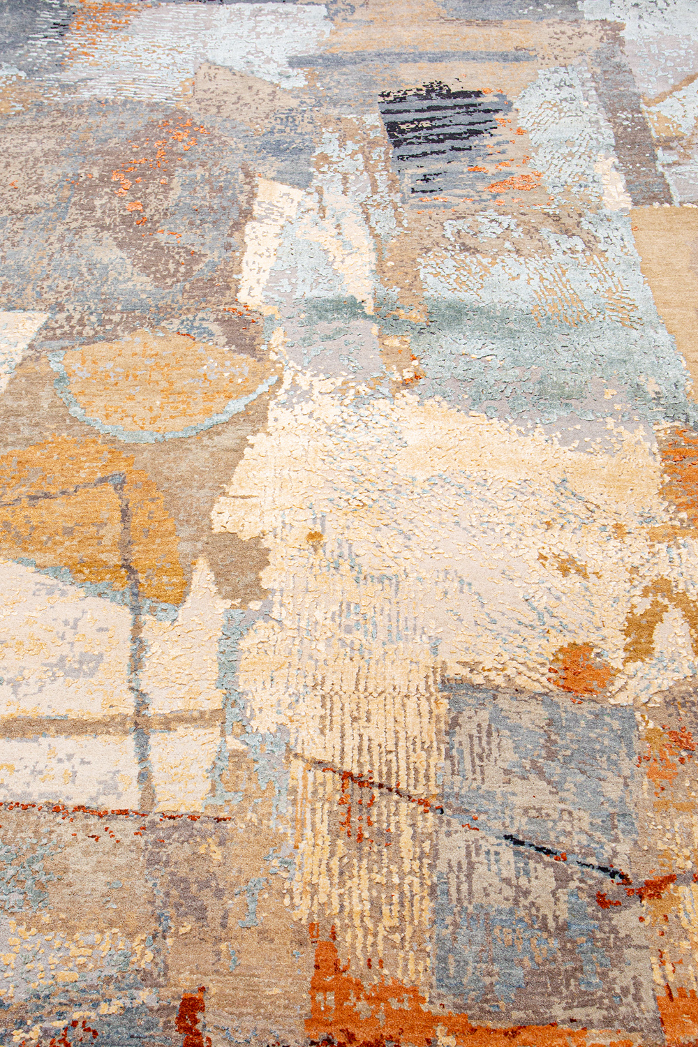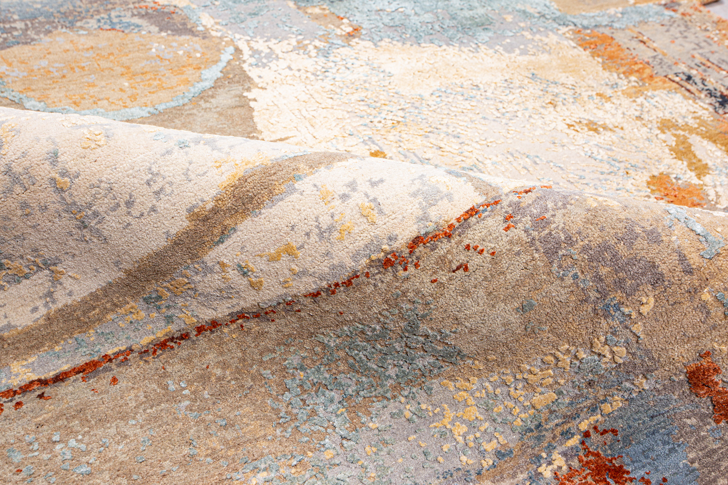 Дизайн ковров напоминает современные полотна художников-абстракционистов и производит столь же яркое и незабываемое впечатление в интерьере. Живописный эффект и необычная фактура зависят от выбора материала: натуральной шерсти, шёлка и от их сочетаний друг с другом. Ковры ткутся вручную в лучших мастерских Индии и Пакистана.